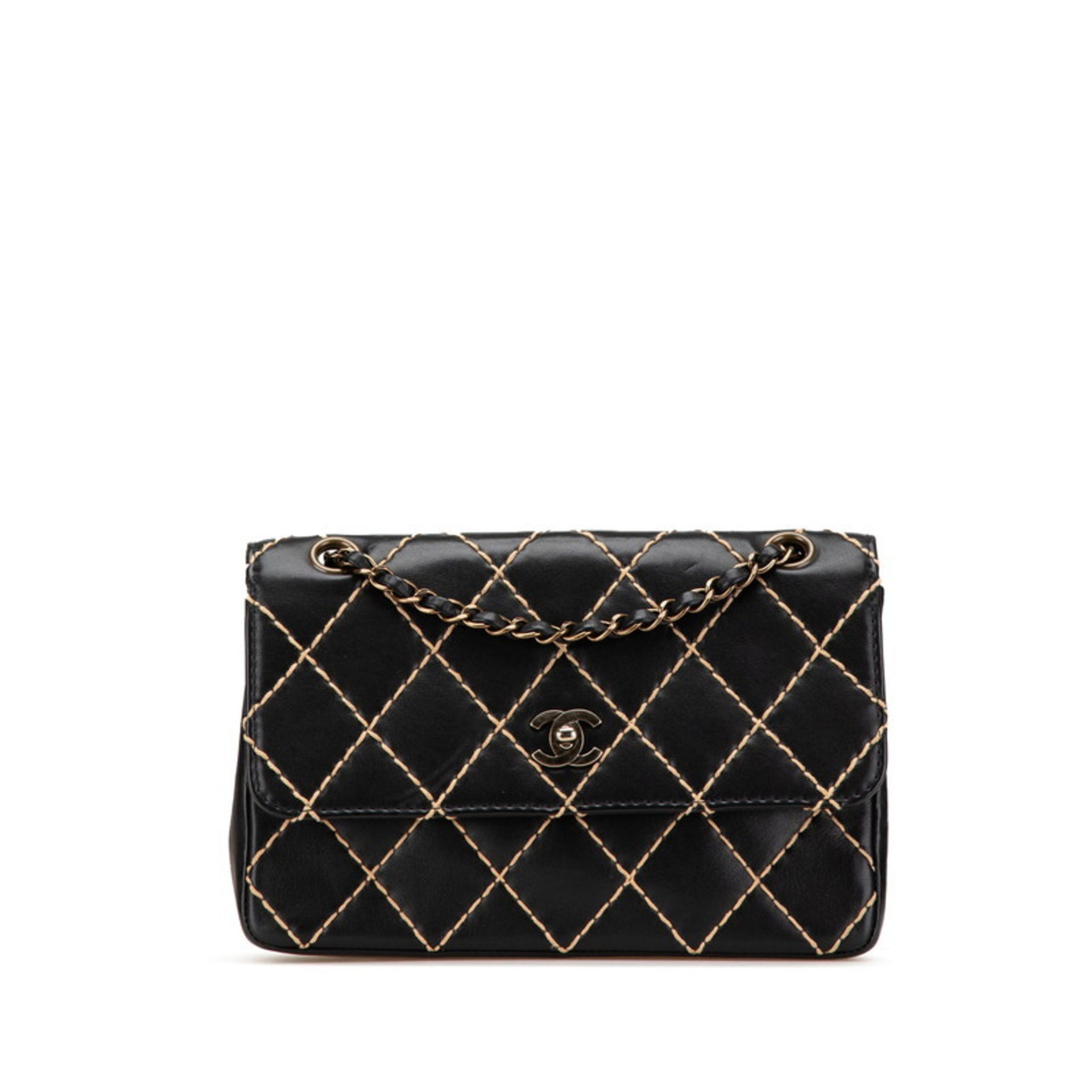CHANEL Coco Mark Wild Stitch Chain Shoulder Bag in Black Lambskin for Women