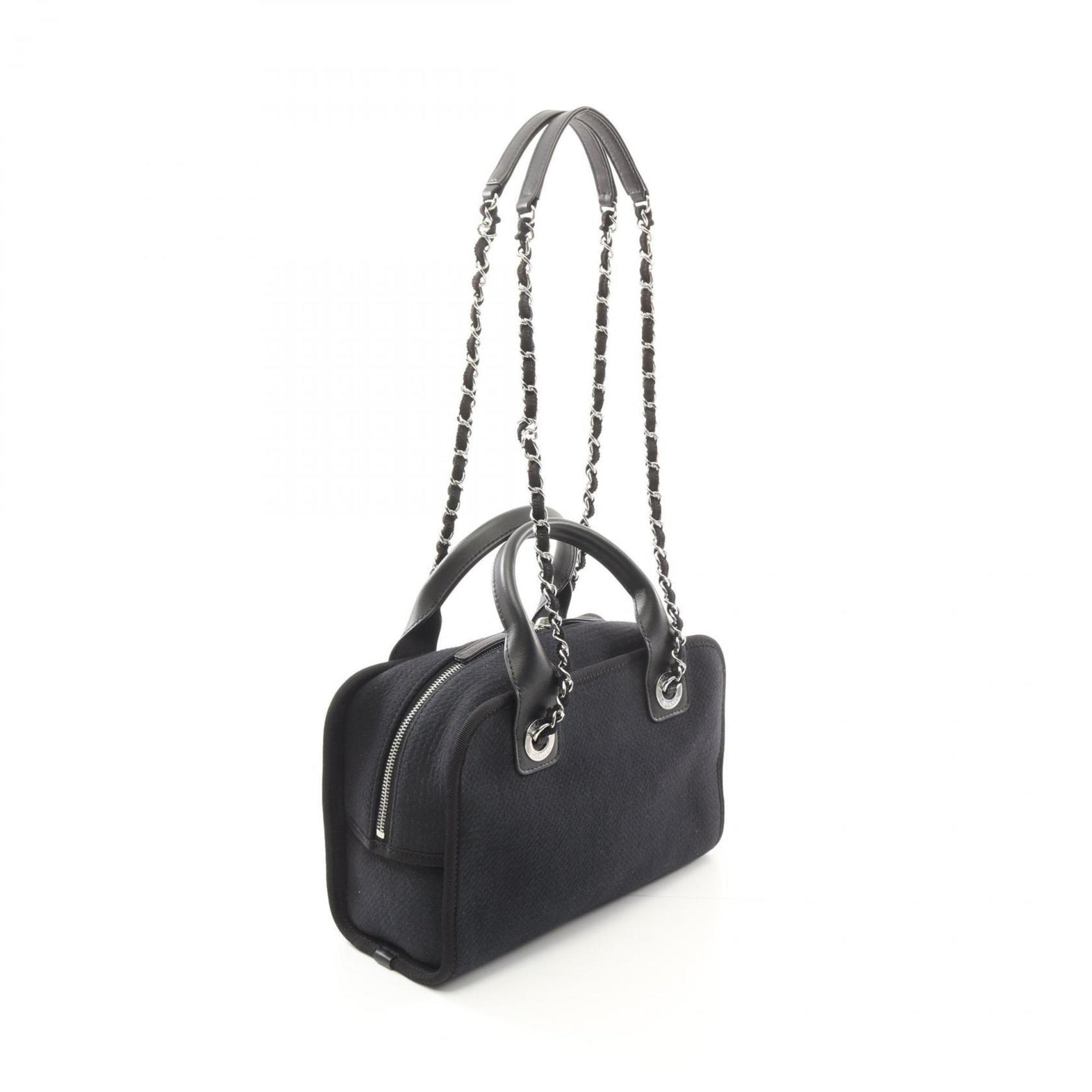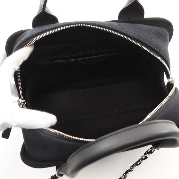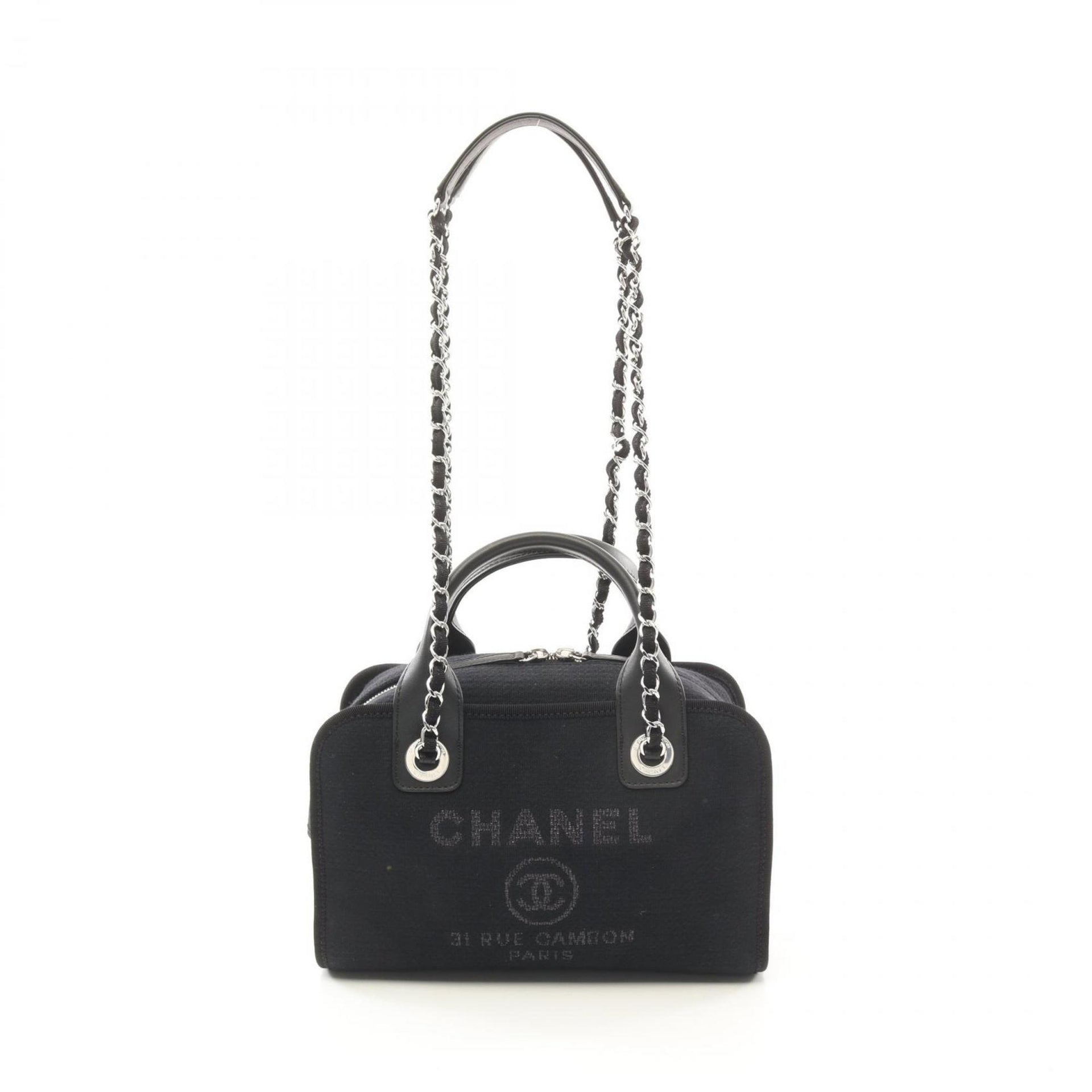 CHANEL Deauville Bowling Bag Shoulder Canvas Leather Women\'s Black A92749