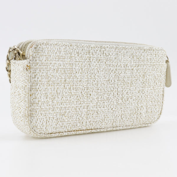 CHANEL Deauville Chain Shoulder Bag Clutch A84415 Tweed White 2way ChainShoulder Women\'s