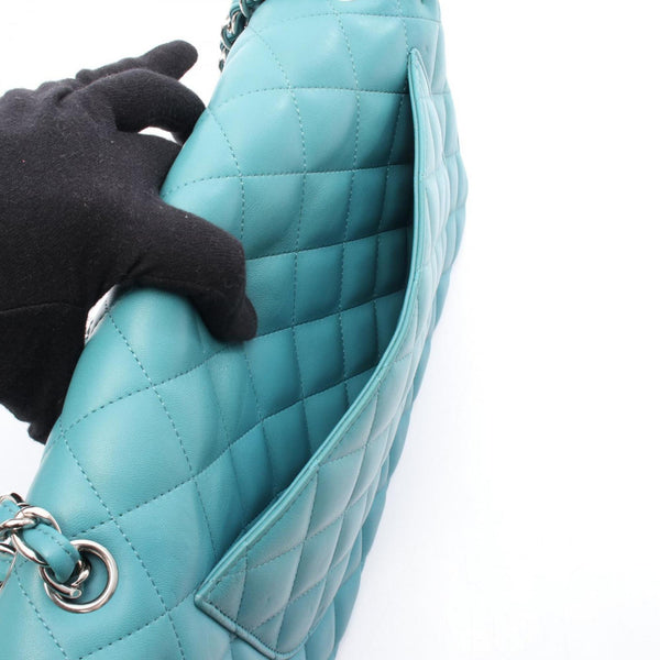 CHANEL Deca Matelasse 30 Classic Large W-Flap Shoulder Bag Leather Women\'s Blue A58600