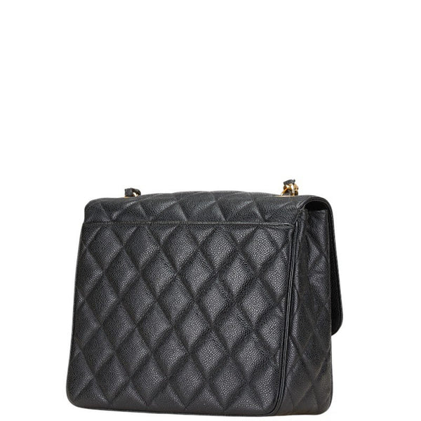 CHANEL Deka Coco Mark Matelasse Chain Shoulder Bag in Black Caviar Skin for Women