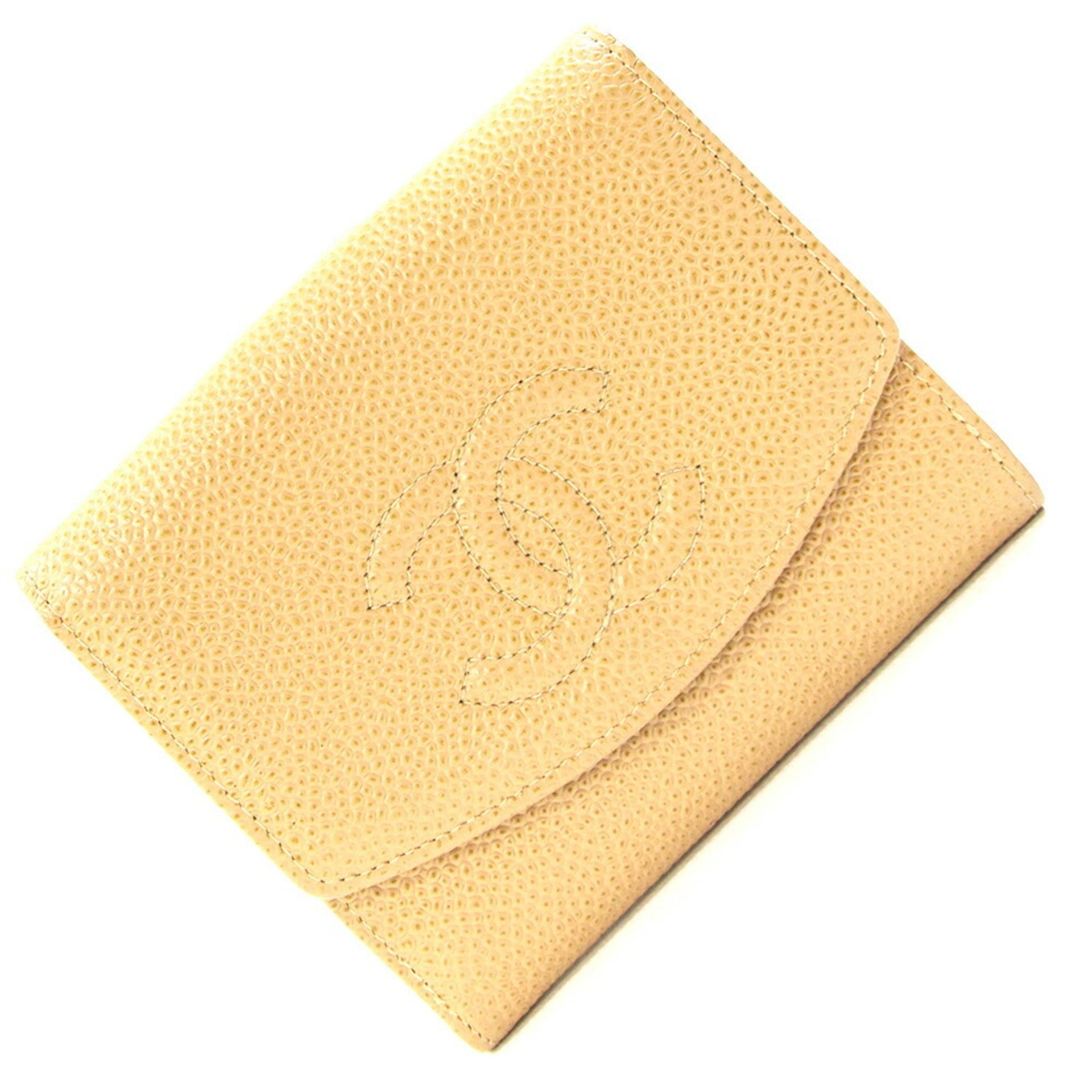 CHANEL Double Wallet with Coco Mark A13496, Beige Caviar Leather, Double-Sided Opening, Women\'s,