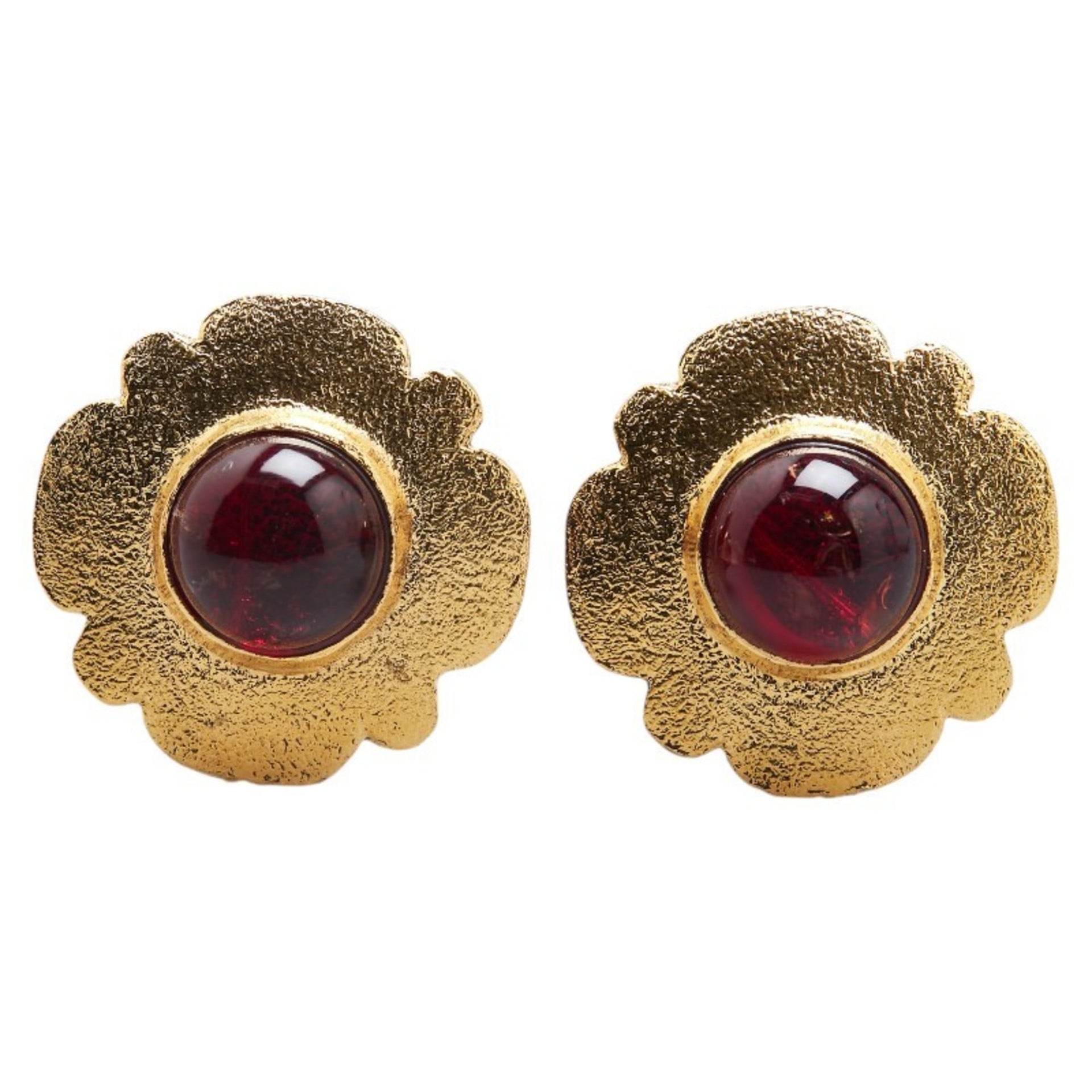 Chanel Flower Motif Earrings Gold Red Plated Women\'s CHANEL