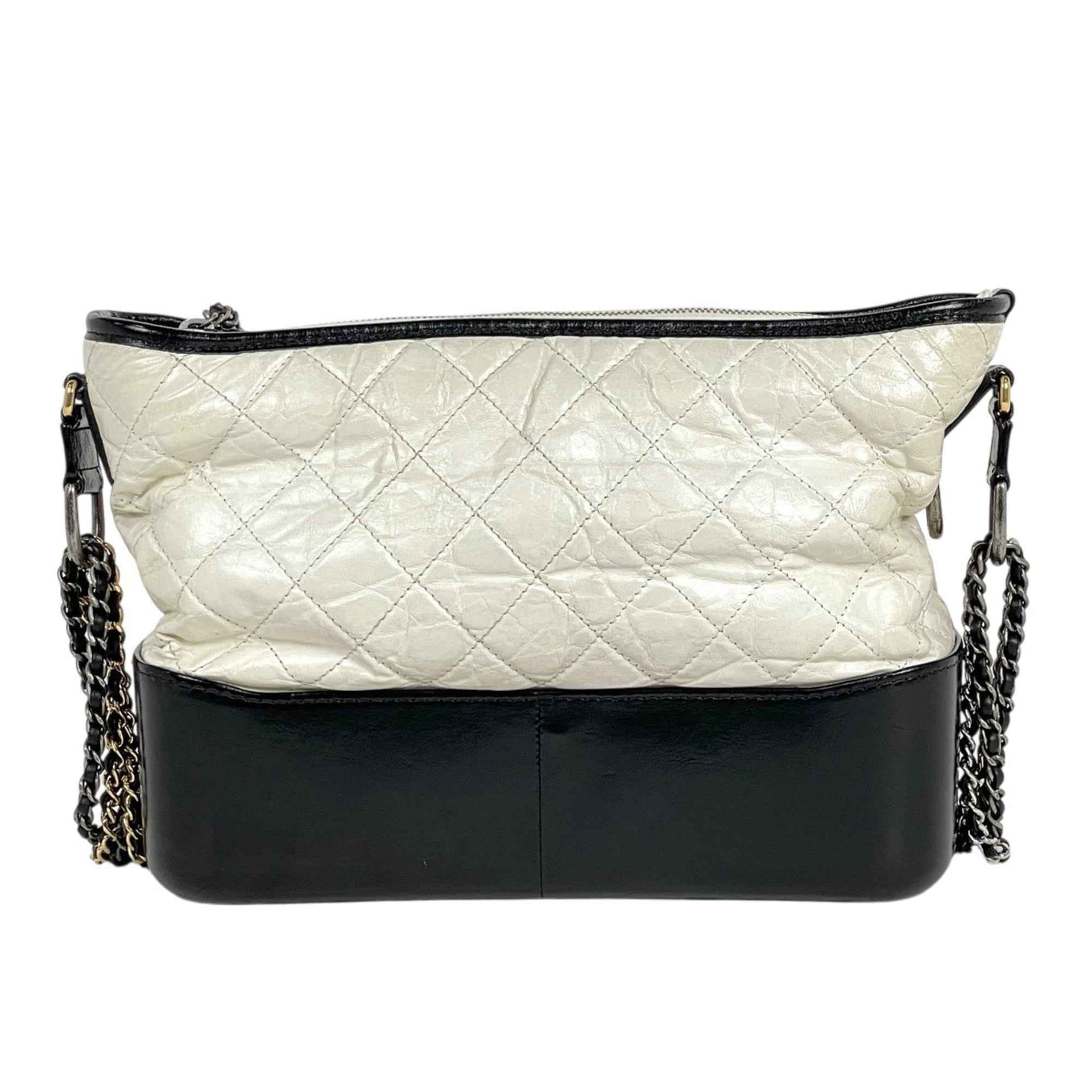 CHANEL Gabrielle de Chanel Large Hobo Bag with Chain and Coco Mark Shoulder in White Black Leather for Women