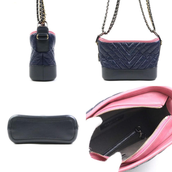 CHANEL Gabrielle de Chanel Shoulder Bag, Leather, Metal, Gray, Navy, Pink, Women\'s, e60657a