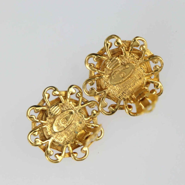 CHANEL Gripoa Round Earrings - Metal Bijou Gold Red Clip-on R2408113001026