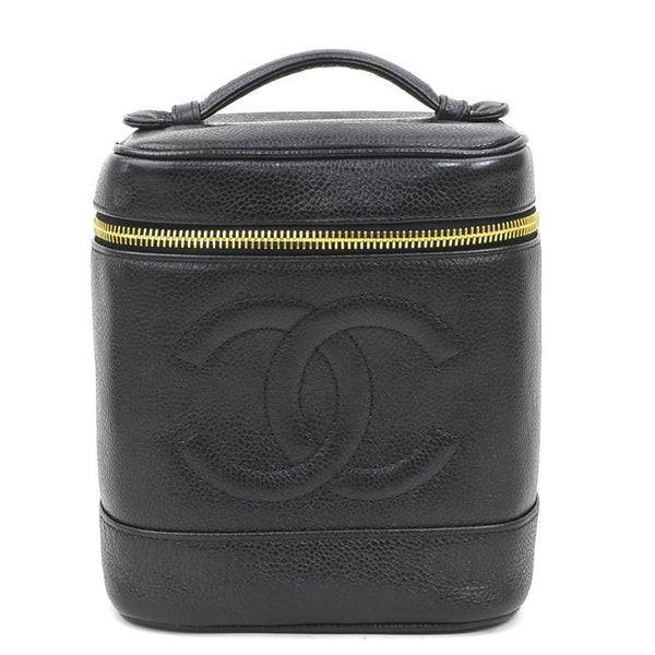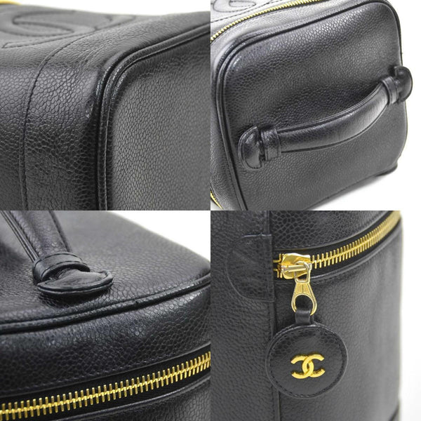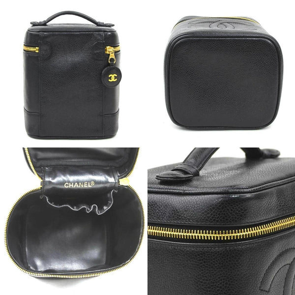 CHANEL handbag vanity bag caviar skin leather black gold ladies e60595a