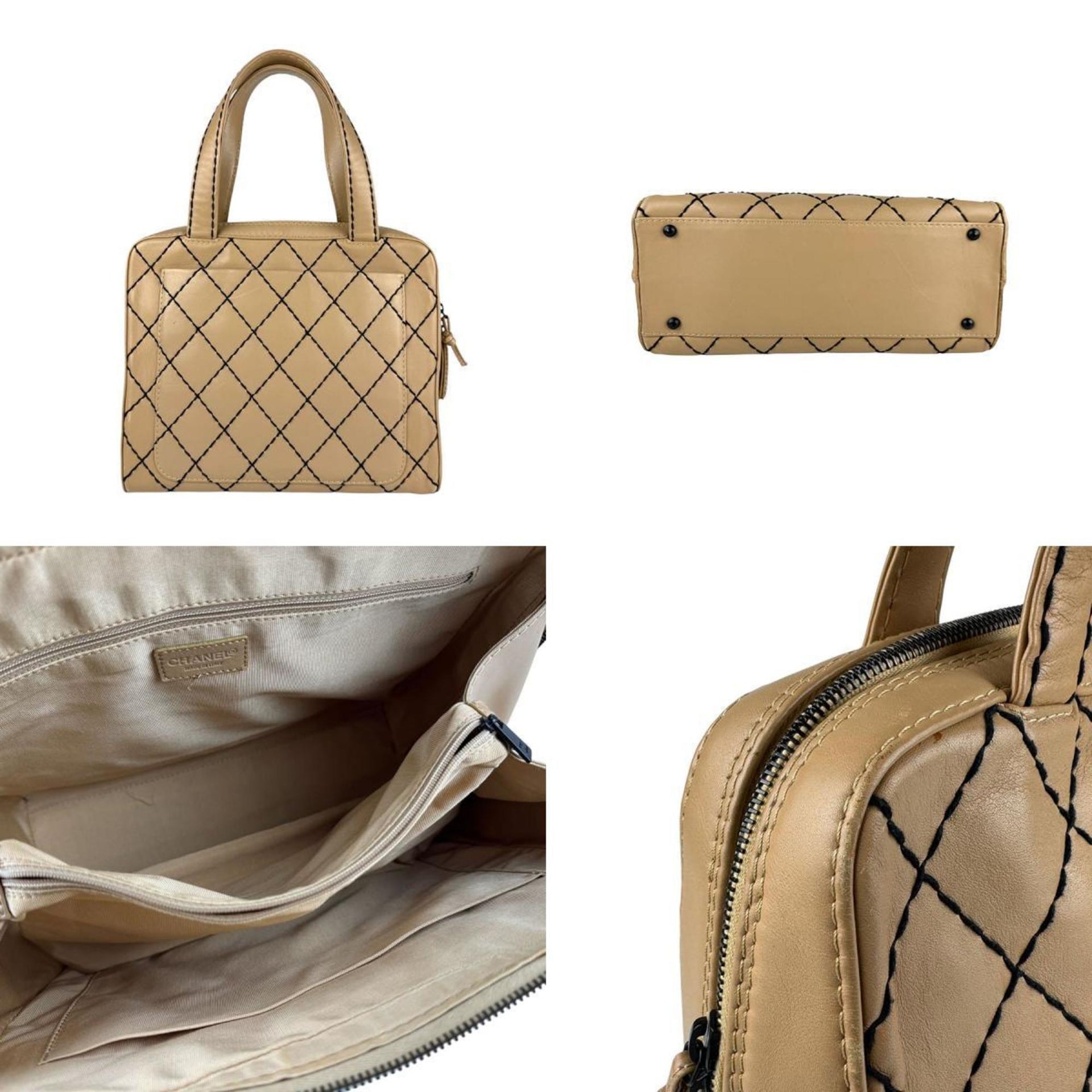 CHANEL Handbag Wild Stitch Leather Beige Black Women\'s z5589