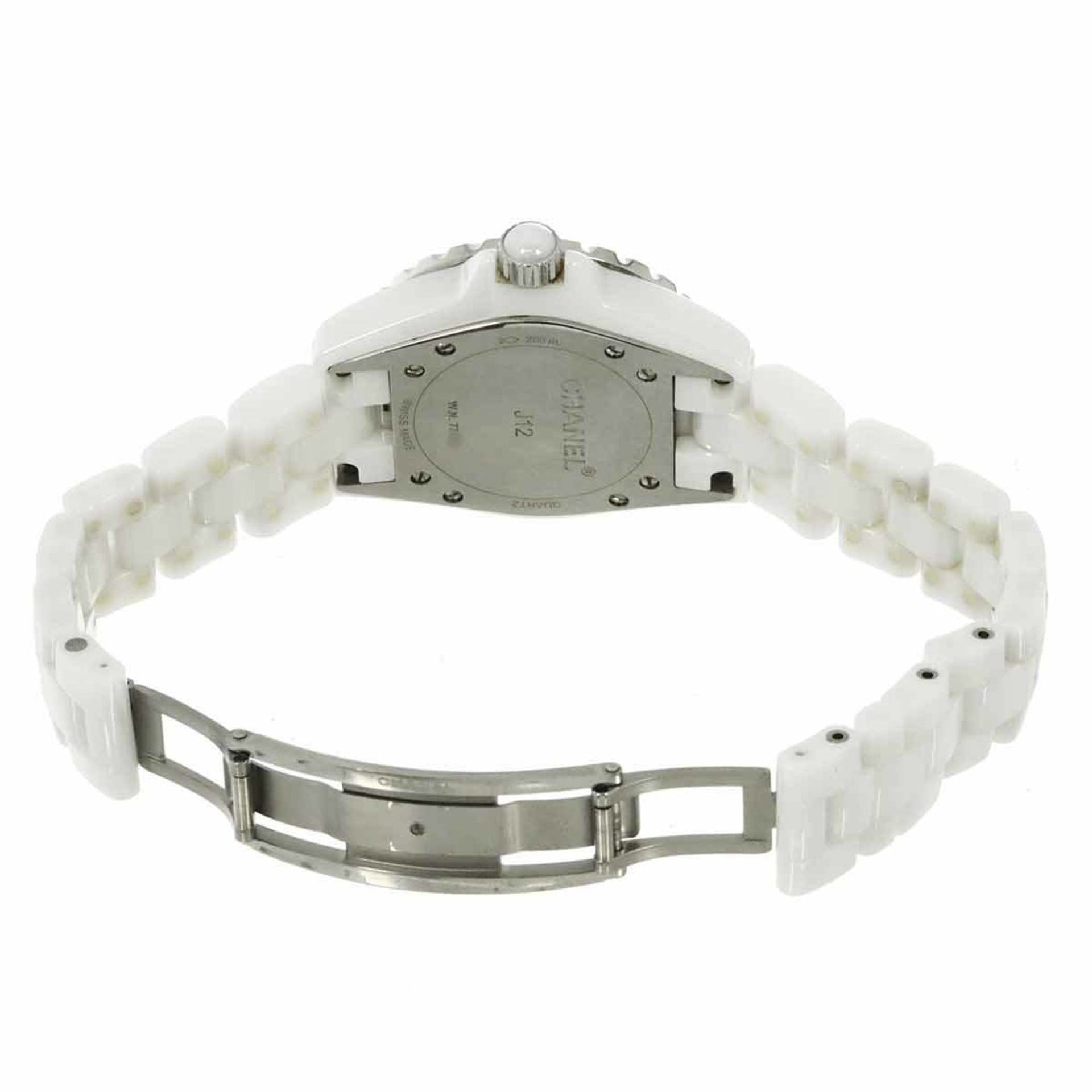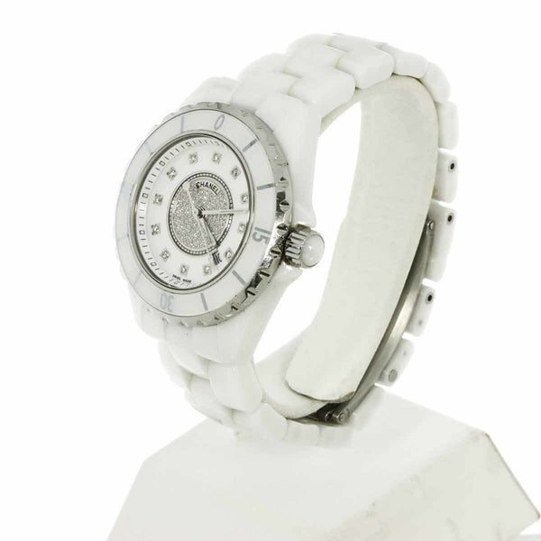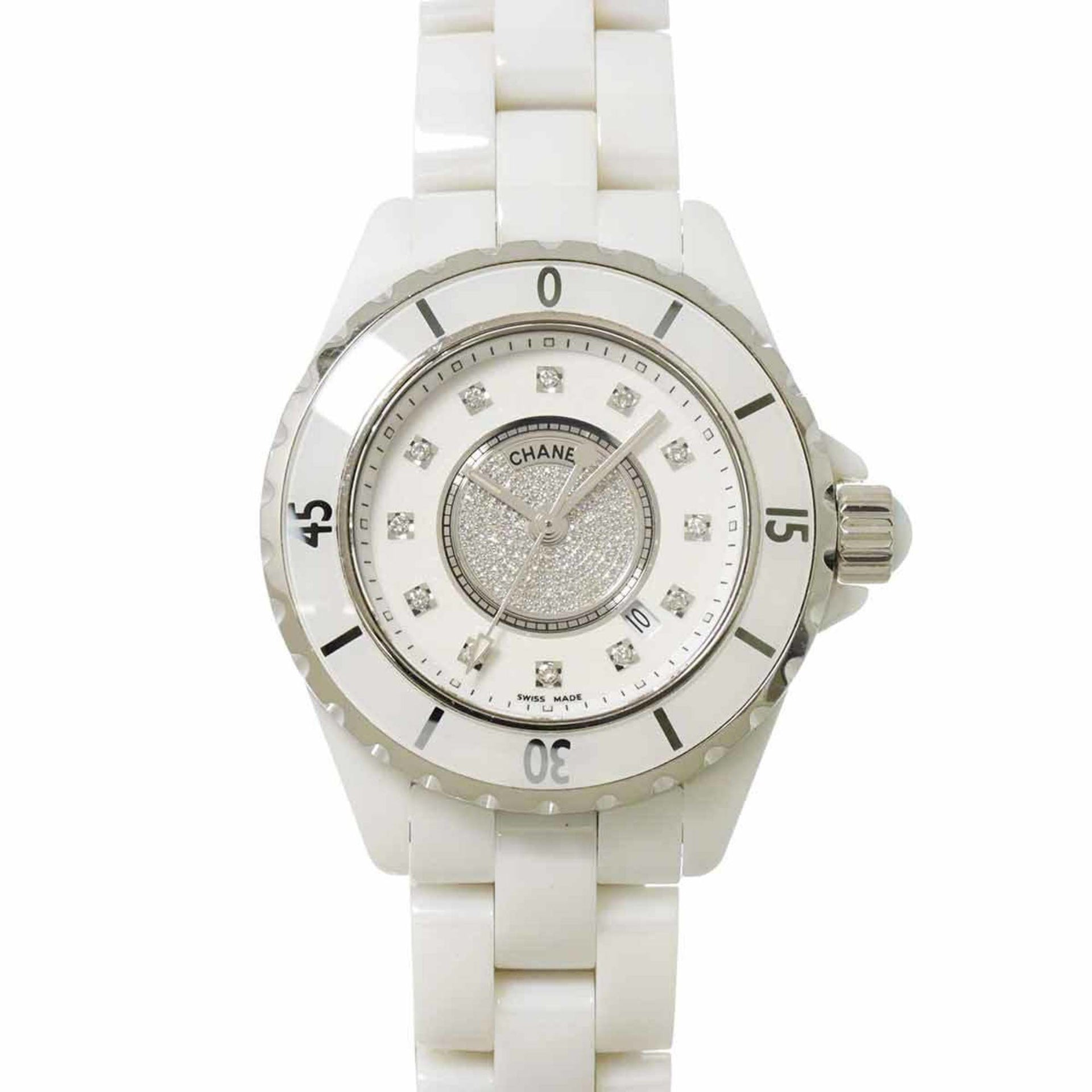 CHANEL J12 33mm H2123 Women\'s Watch with 12 Diamonds, Date Display, White Ceramic Quartz Movement