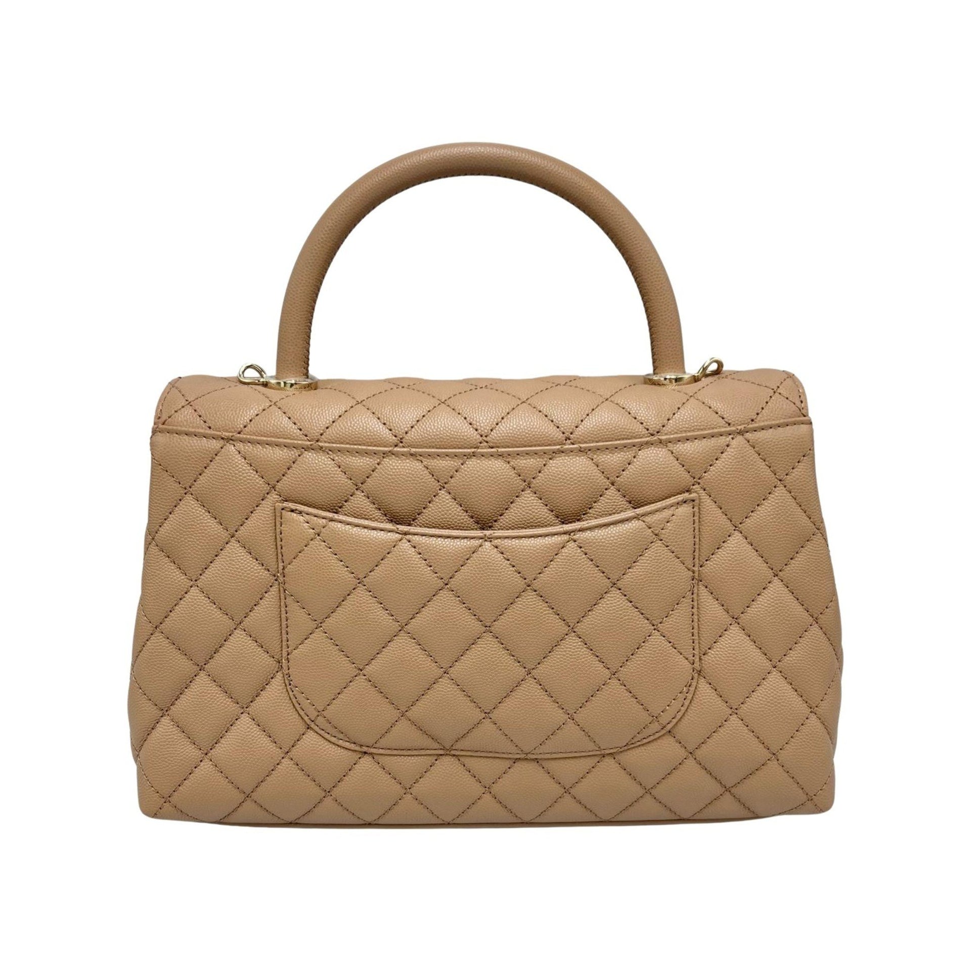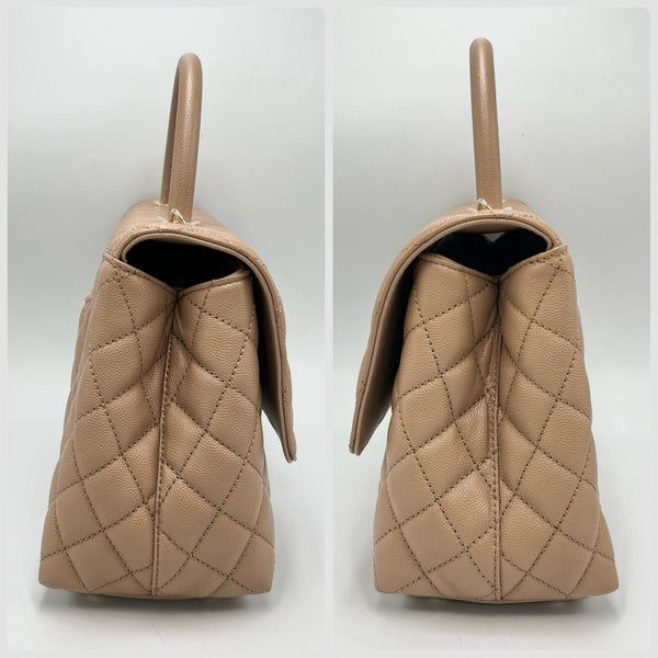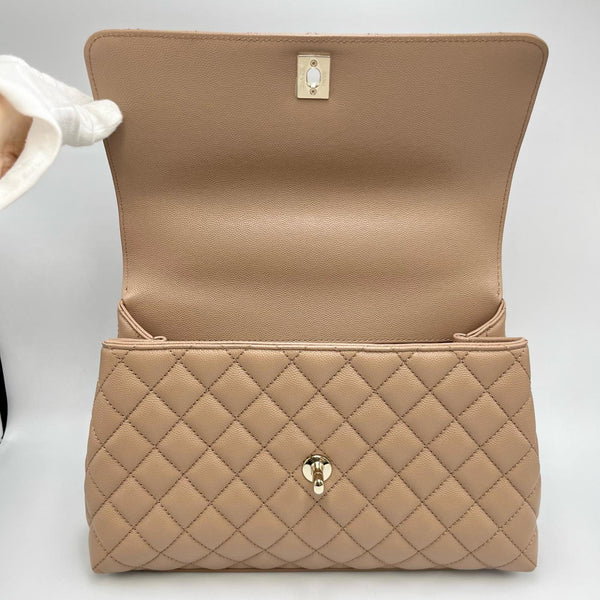 CHANEL Large Handbag with Top Handle, Flap, and Coco Size 29, Matelasse, 2-Way, Matte Caviar Leather, Pink Beige, Women\'s