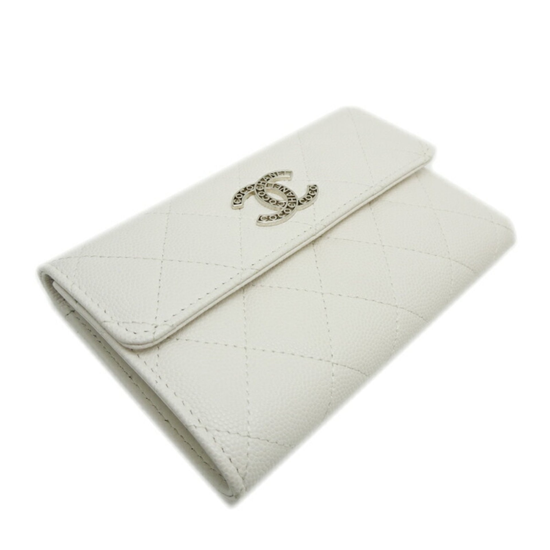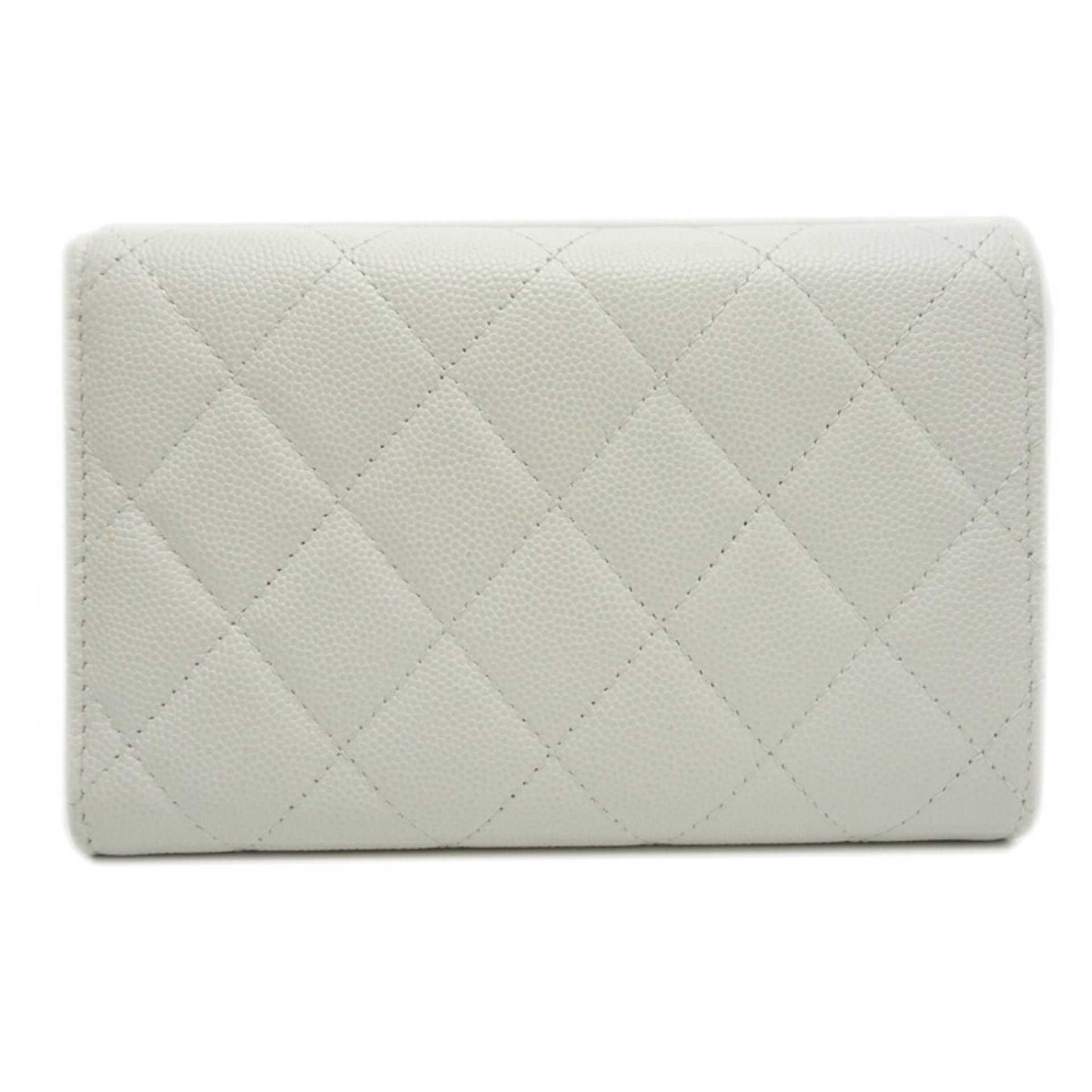 Chanel Long Wallet Women\'s Tri-fold AP3051 Caviar Skin White