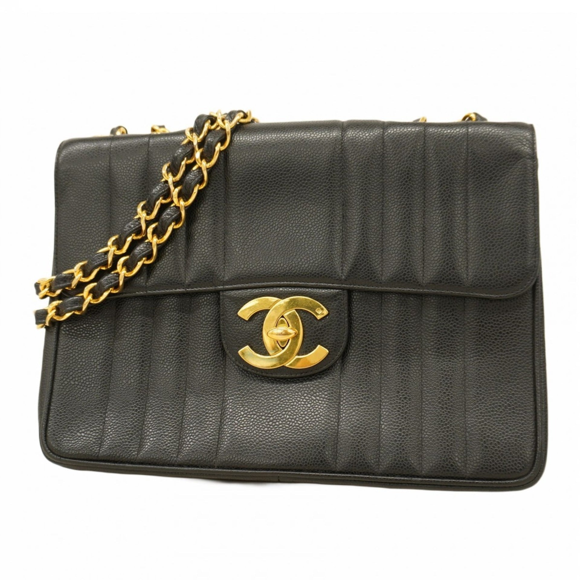 Chanel Mademoiselle Shoulder Bag with Double Chain, Deca Coco Caviar Skin, Black, Women\'s, P1879364