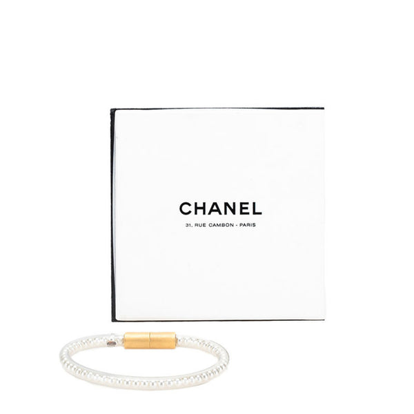 Chanel Magnetic Tube Bracelet, Gold, Clear Vinyl, Plated with Faux Pearls, Women\'s, CHANEL