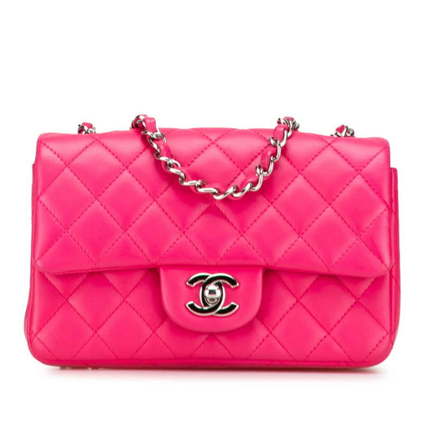 CHANEL Matelasse 20 Coco Mark Crossbody Chain Shoulder Bag in Pink with Silver Hardware and Lambskin, Women\'s