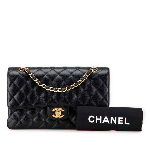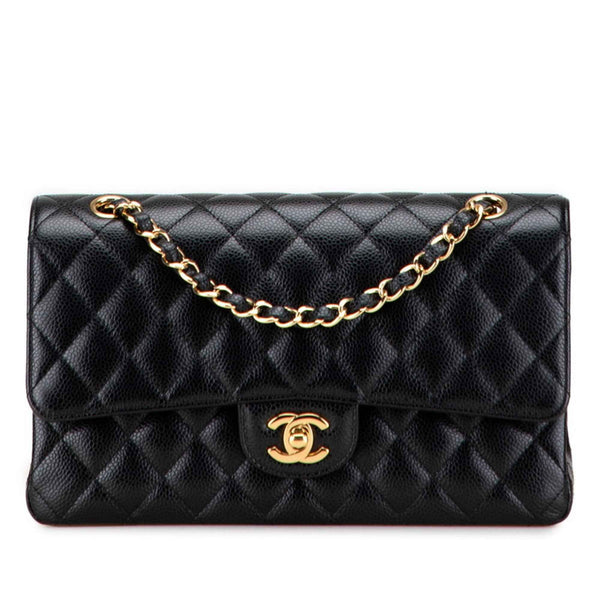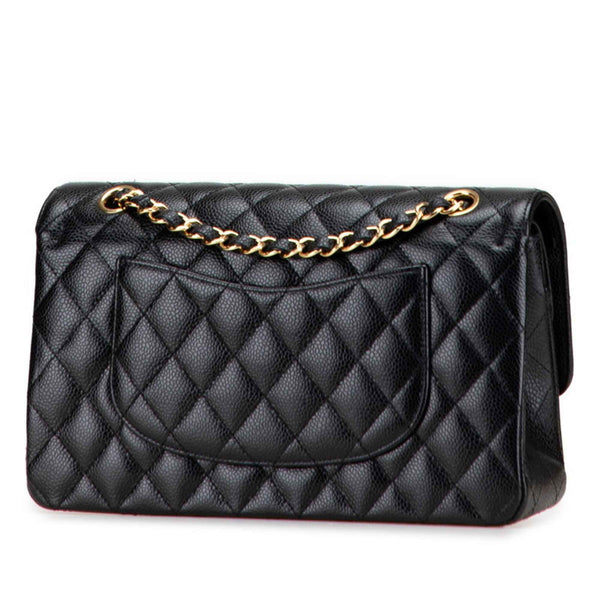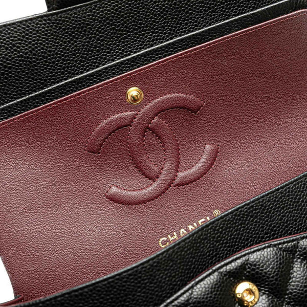 CHANEL Matelasse 25 Coco Mark Double Flap Chain Shoulder Bag in Black Caviar Leather for Women