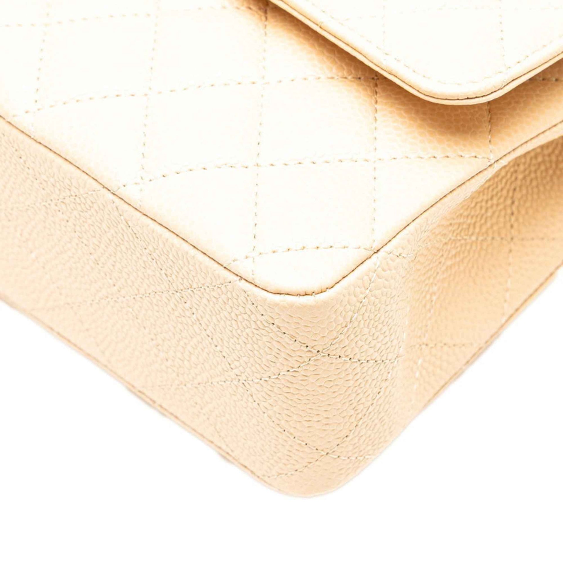 CHANEL Matelasse 25 Double Flap Chain Shoulder Bag in Beige with Gold Hardware and Caviar Leather, Women\'s