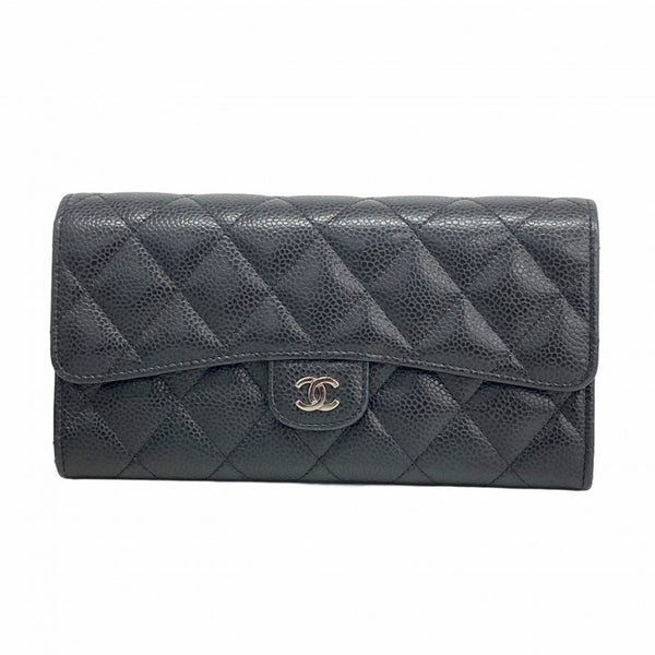 Chanel Matelasse Caviar Leather Long Wallet, Black, Women\'s