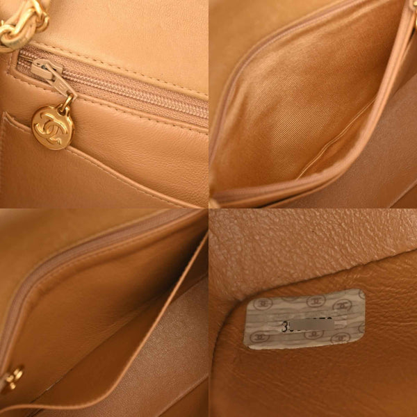 CHANEL Matelasse Chain Shoulder Bag, 18cm, Beige, AS0148, Unisex, Lambskin