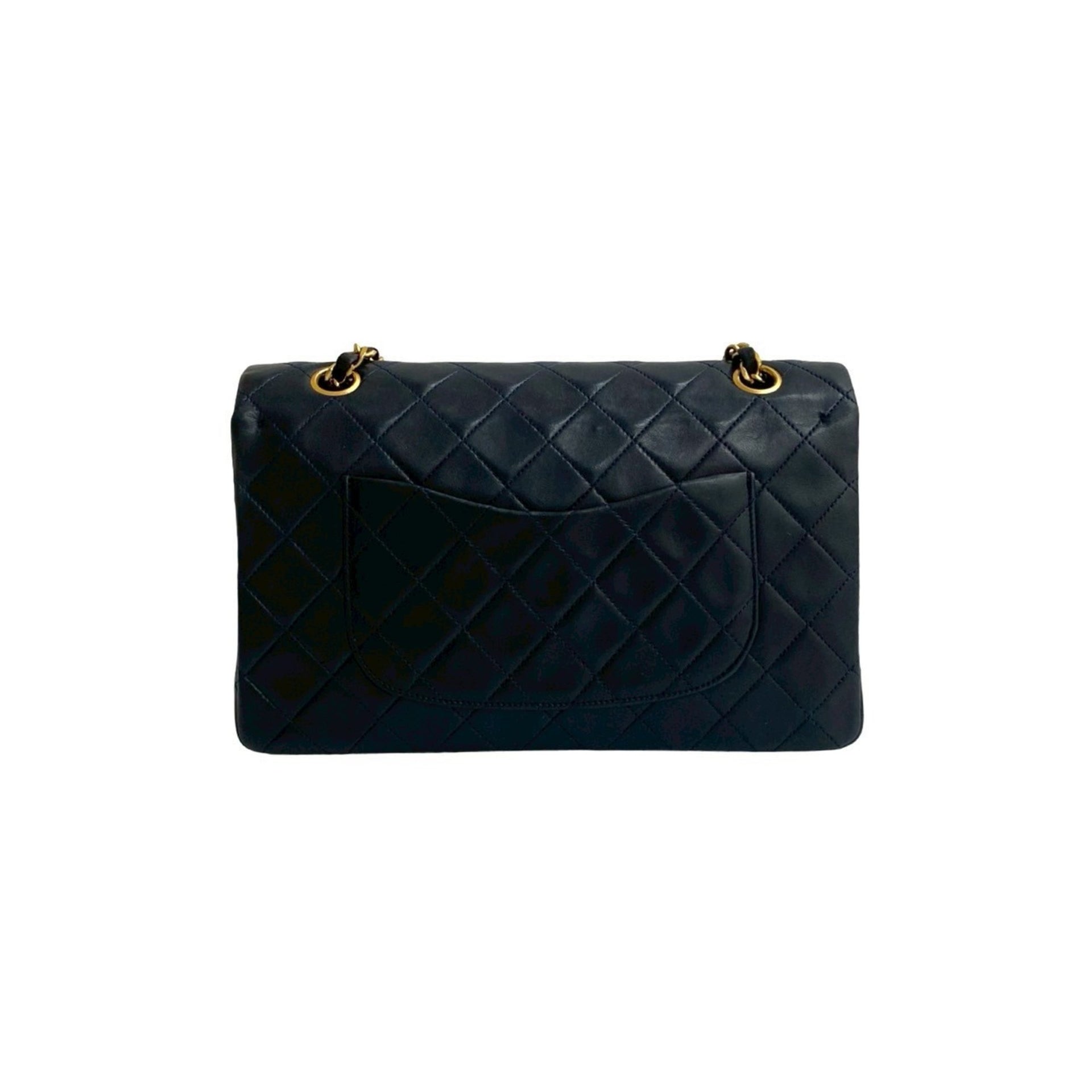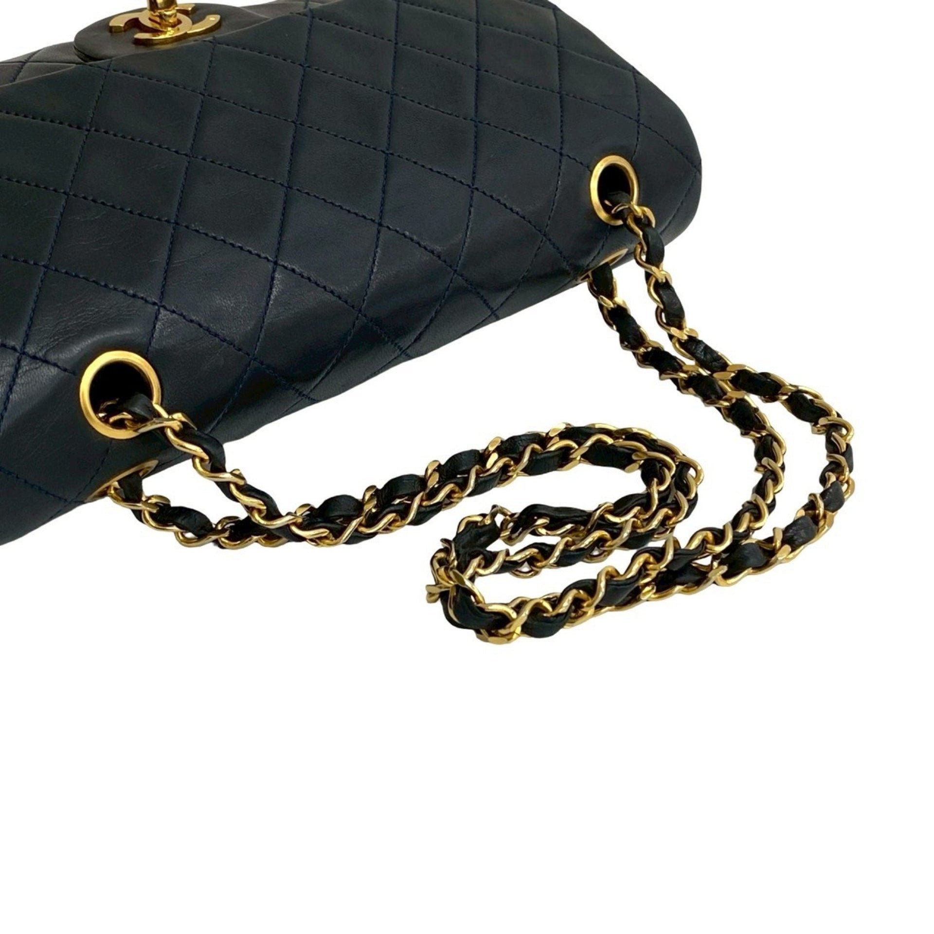 CHANEL Matelasse Coco Double Flap Lambskin Leather Chain Semi-Shoulder Bag, Navy Blue, 415-5