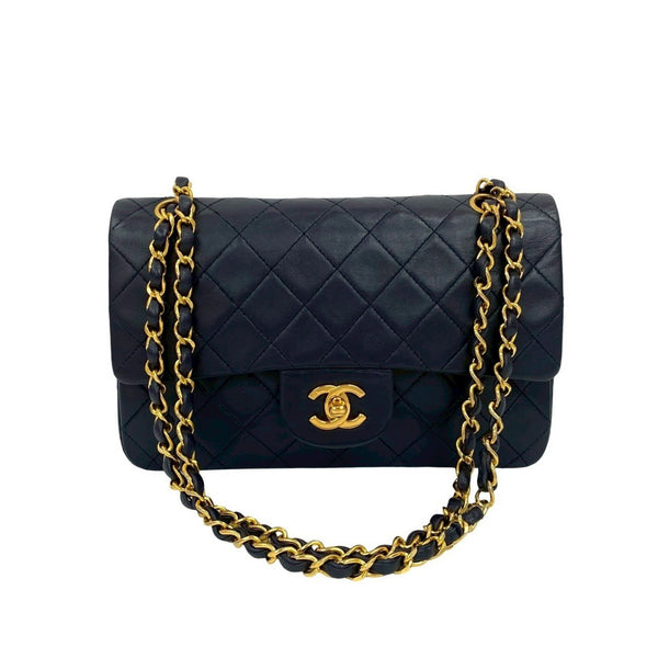 CHANEL Matelasse Coco Double Flap Lambskin Leather Chain Shoulder Bag, Navy, 27979