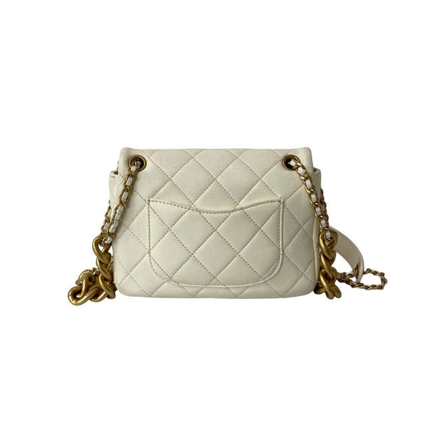 CHANEL Matelasse Coco Lambskin Leather Mini Shoulder Bag with Chain, White, PA1-6