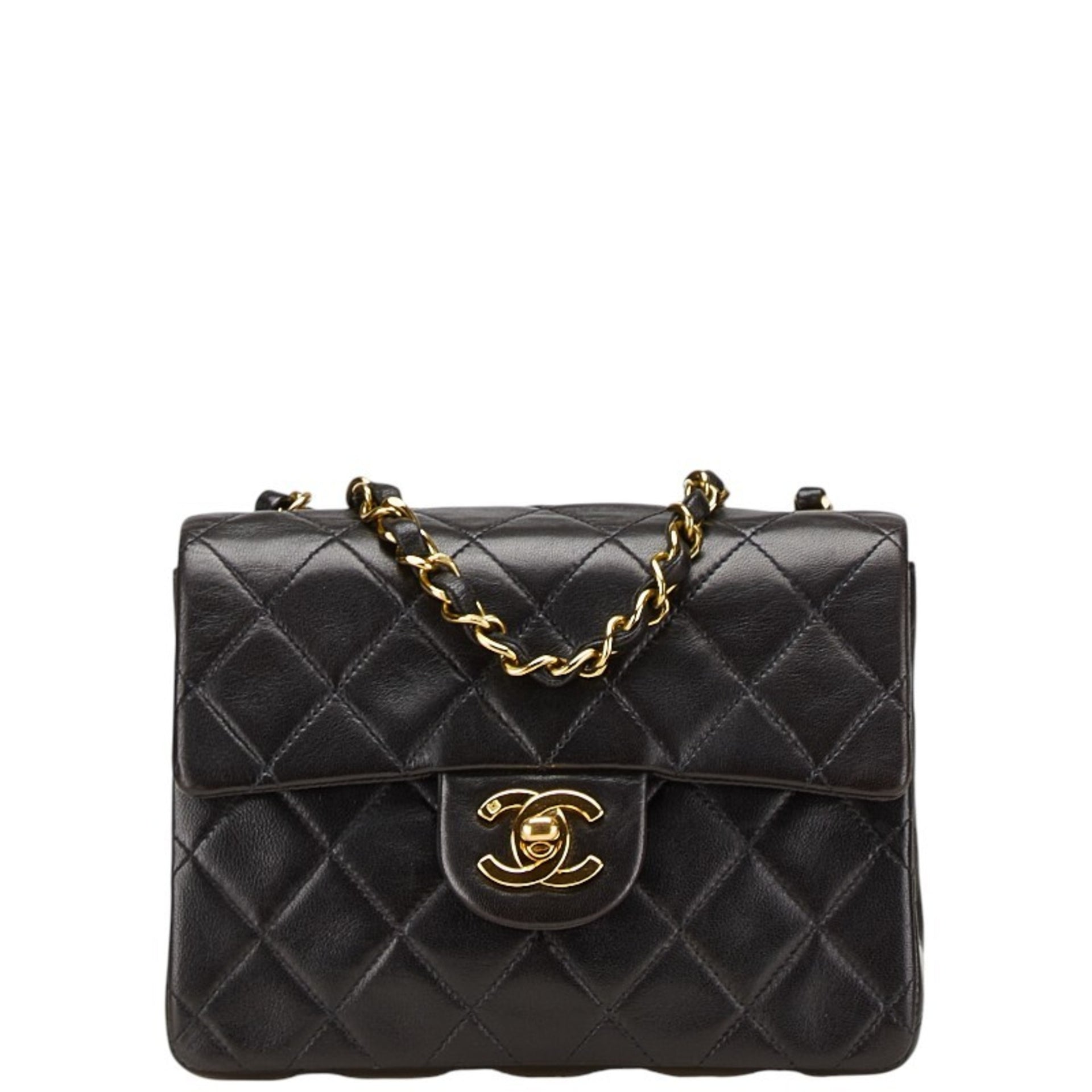 CHANEL Matelasse Coco Mark Chain Shoulder Bag in Black Lambskin for Women