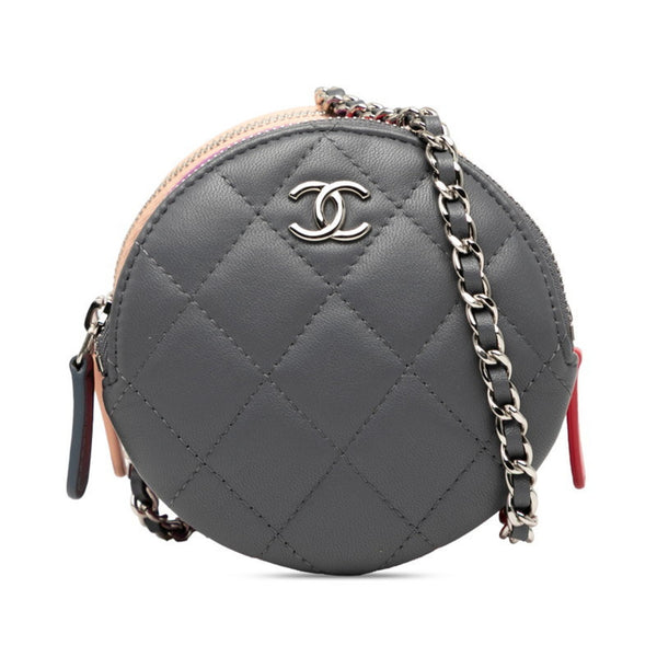 CHANEL Matelasse Coco Mark Chain Shoulder Bag in Gray, Pink, and Purple Lambskin for Women