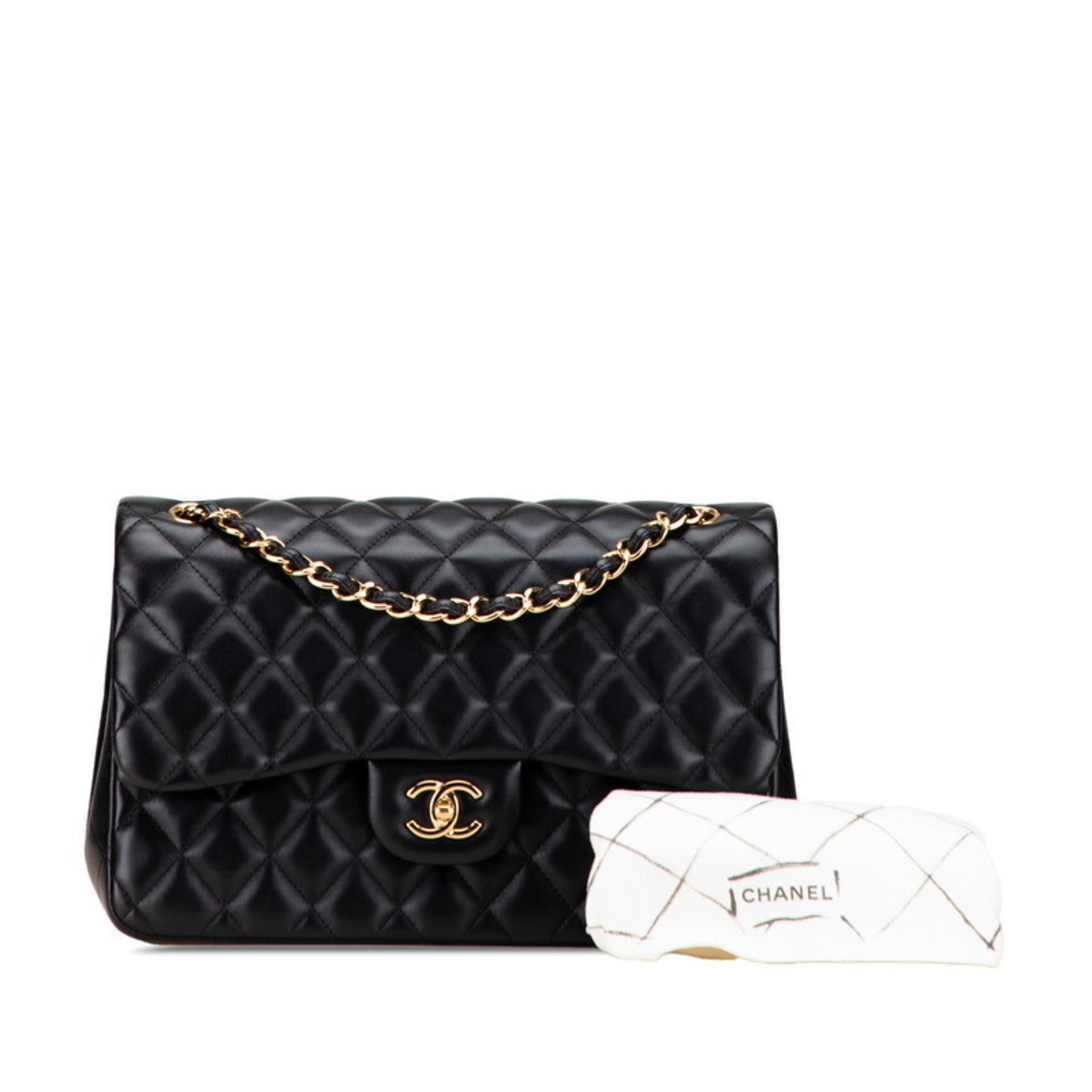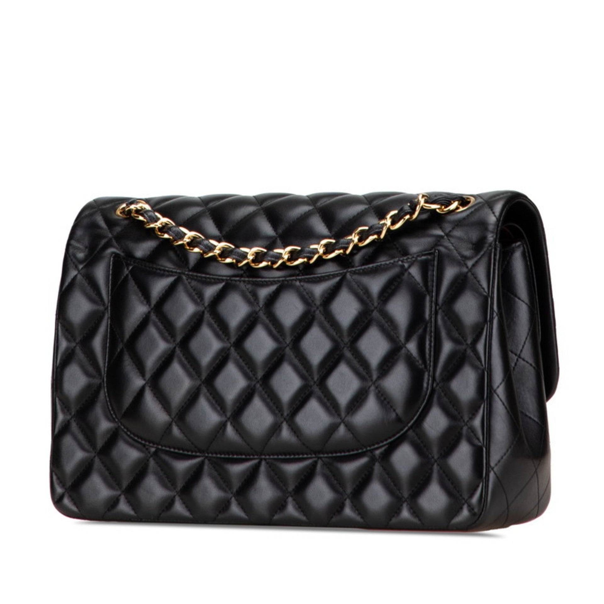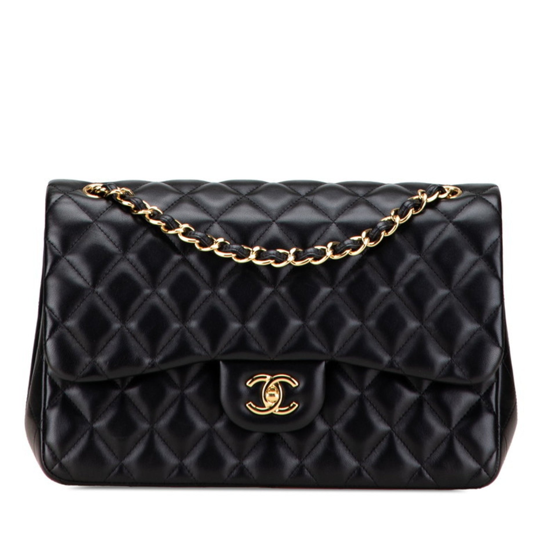CHANEL Matelasse Coco Mark Double Flap Chain Shoulder Bag Handbag Black Lambskin Women\'s