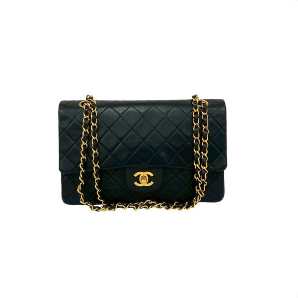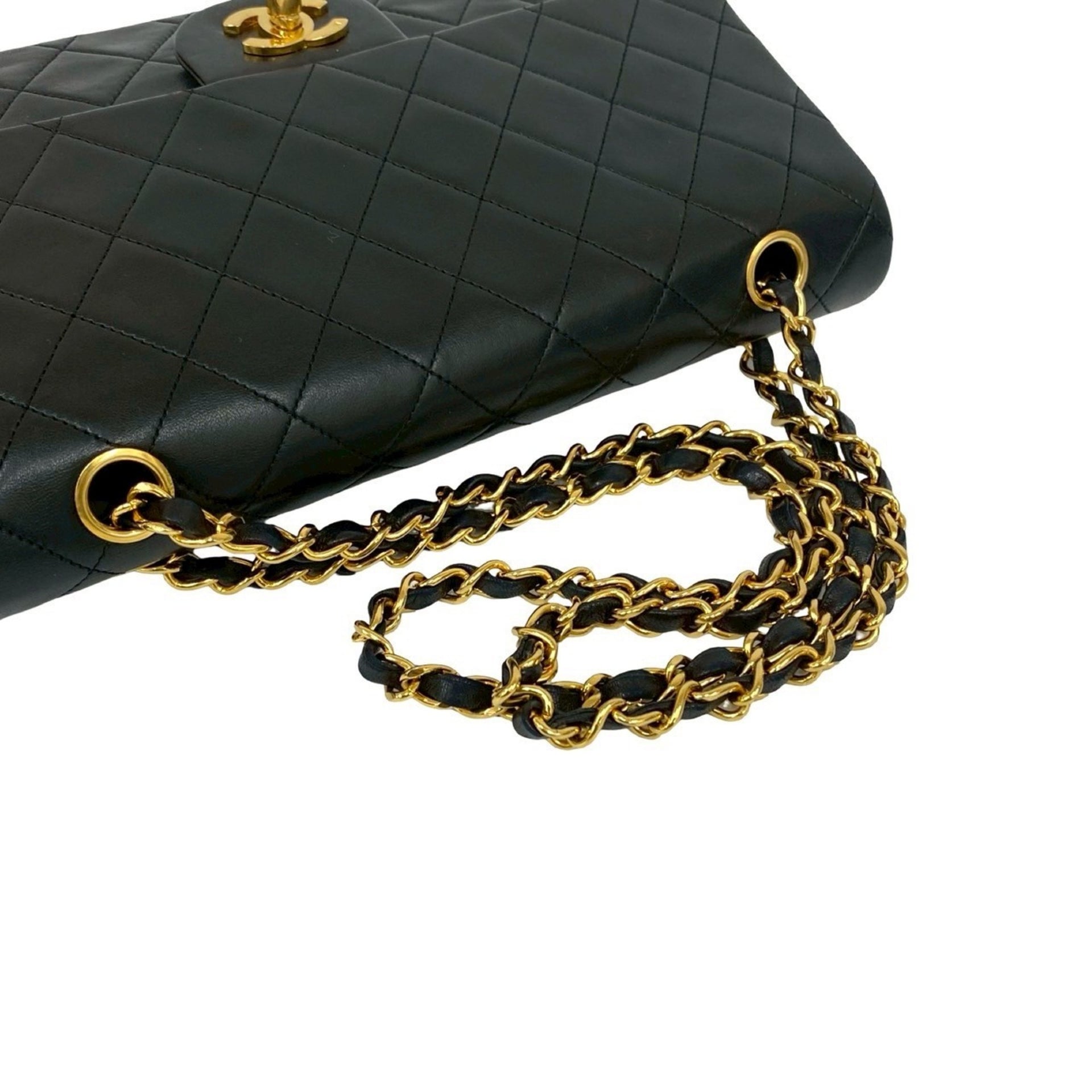 CHANEL Matelasse Coco Mark Double Flap Lambskin Chain Shoulder Bag, Black, 26520