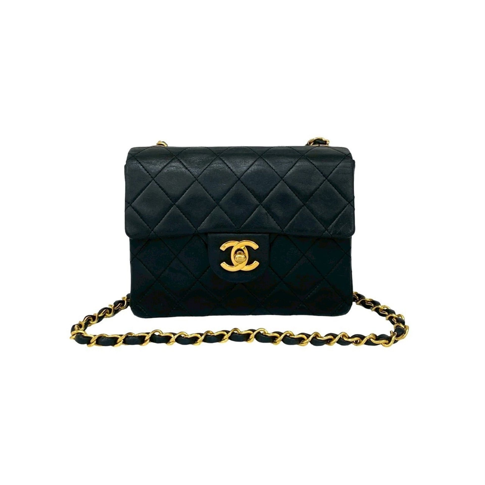 CHANEL Matelasse Coco Mark Lambskin Chain Shoulder Bag Pochette Black 26065