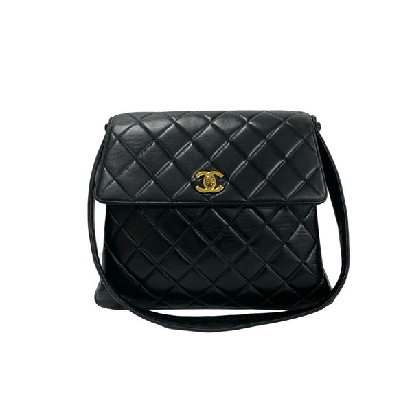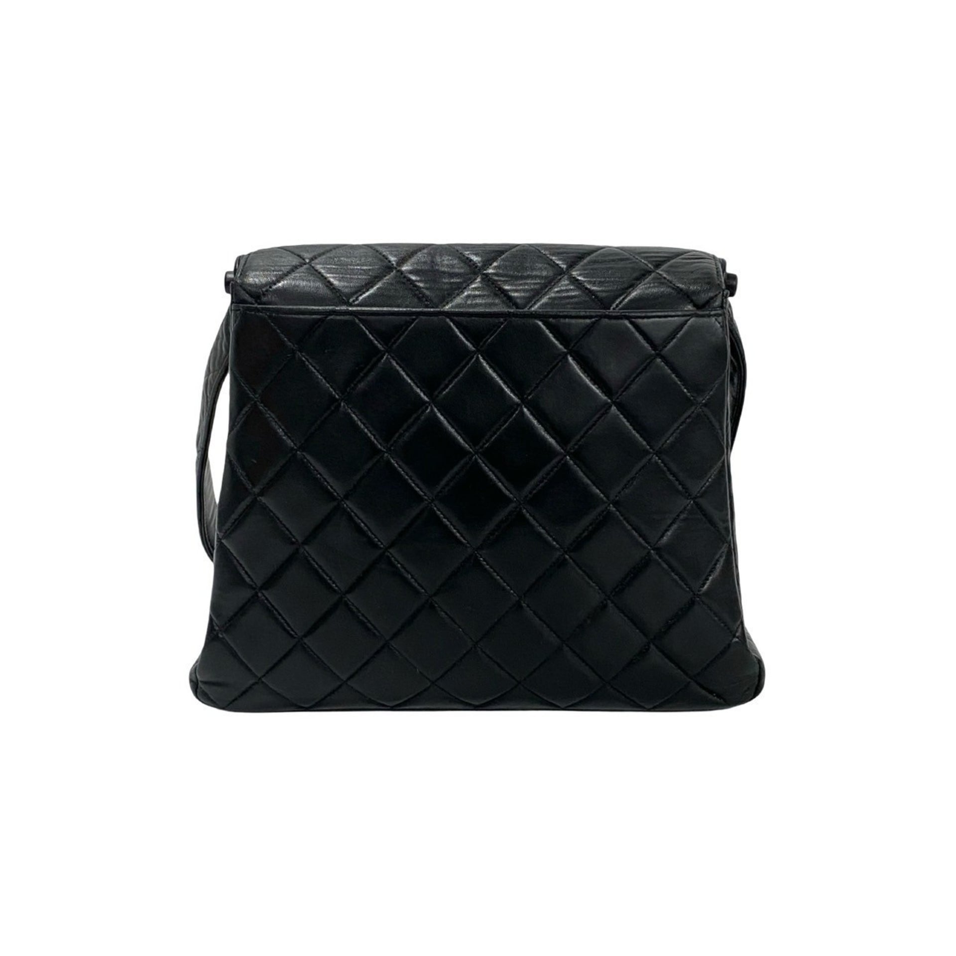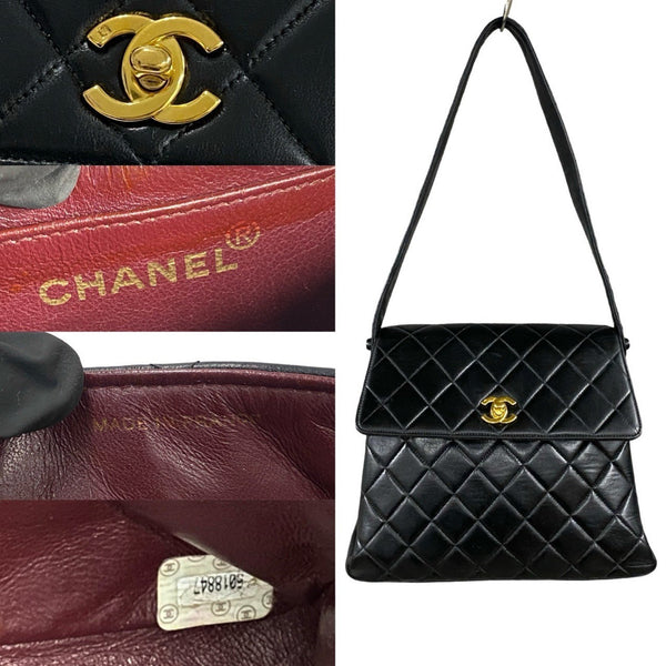 CHANEL Matelasse Coco Mark Lambskin Genuine Leather One-Shoulder Bag Tote Black 37958