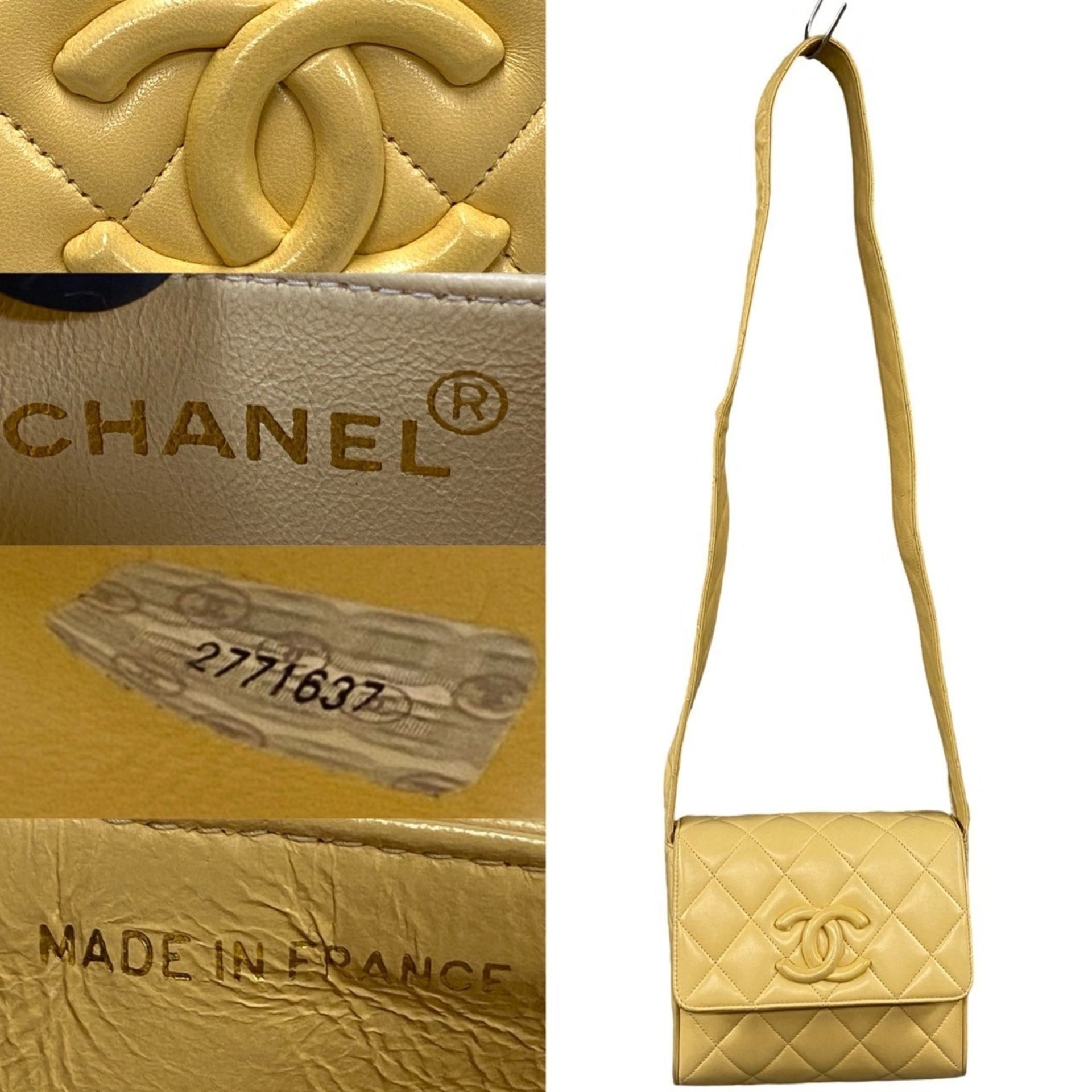 CHANEL Matelasse Coco Mark Lambskin Genuine Leather Shoulder Bag Pochette Beige 80047