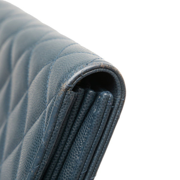 CHANEL Matelasse Coco Mark Long Wallet Blue Caviar Leather Women\'s