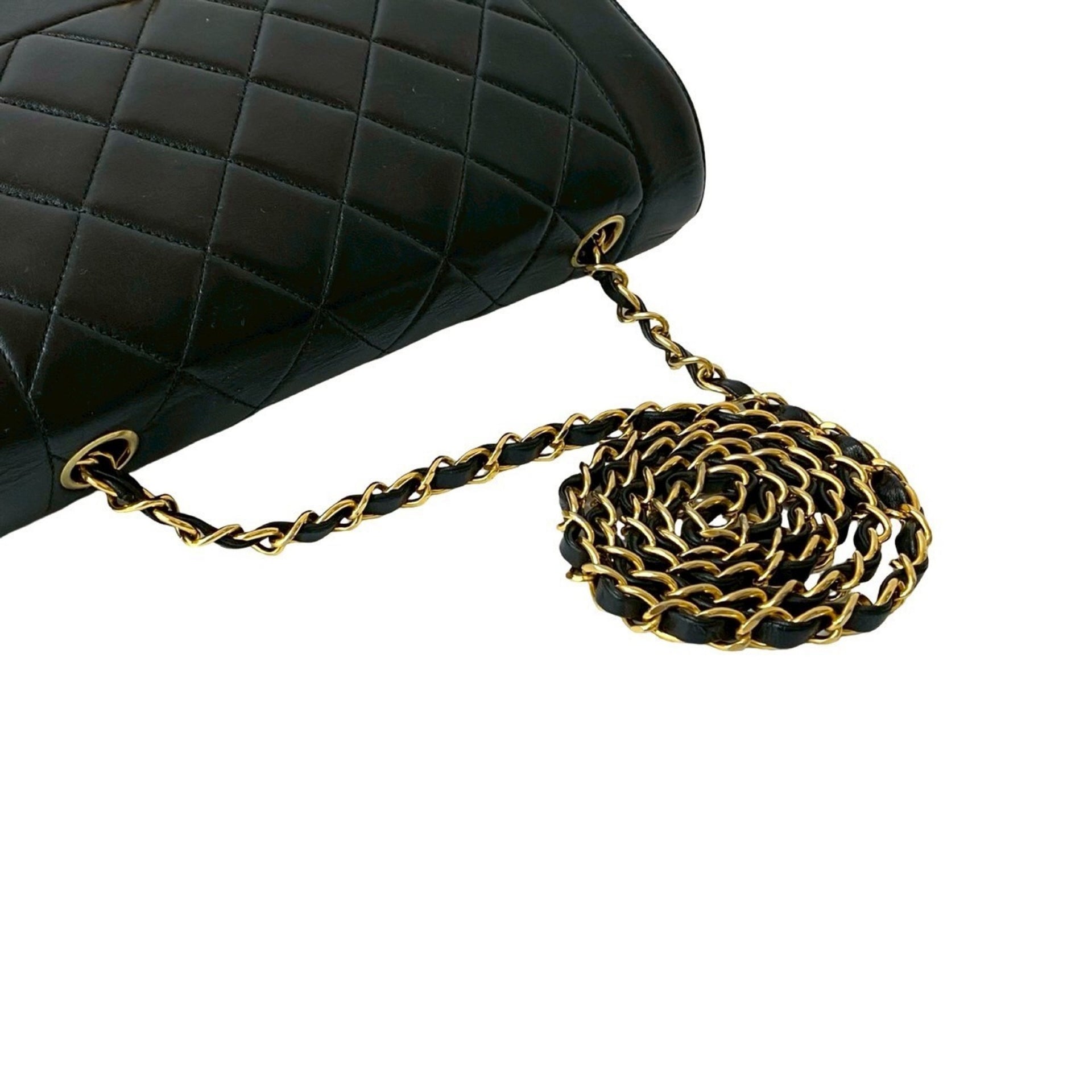 CHANEL Matelasse Diana Flap Coco Lambskin Leather Chain Shoulder Bag, Black, 573-1