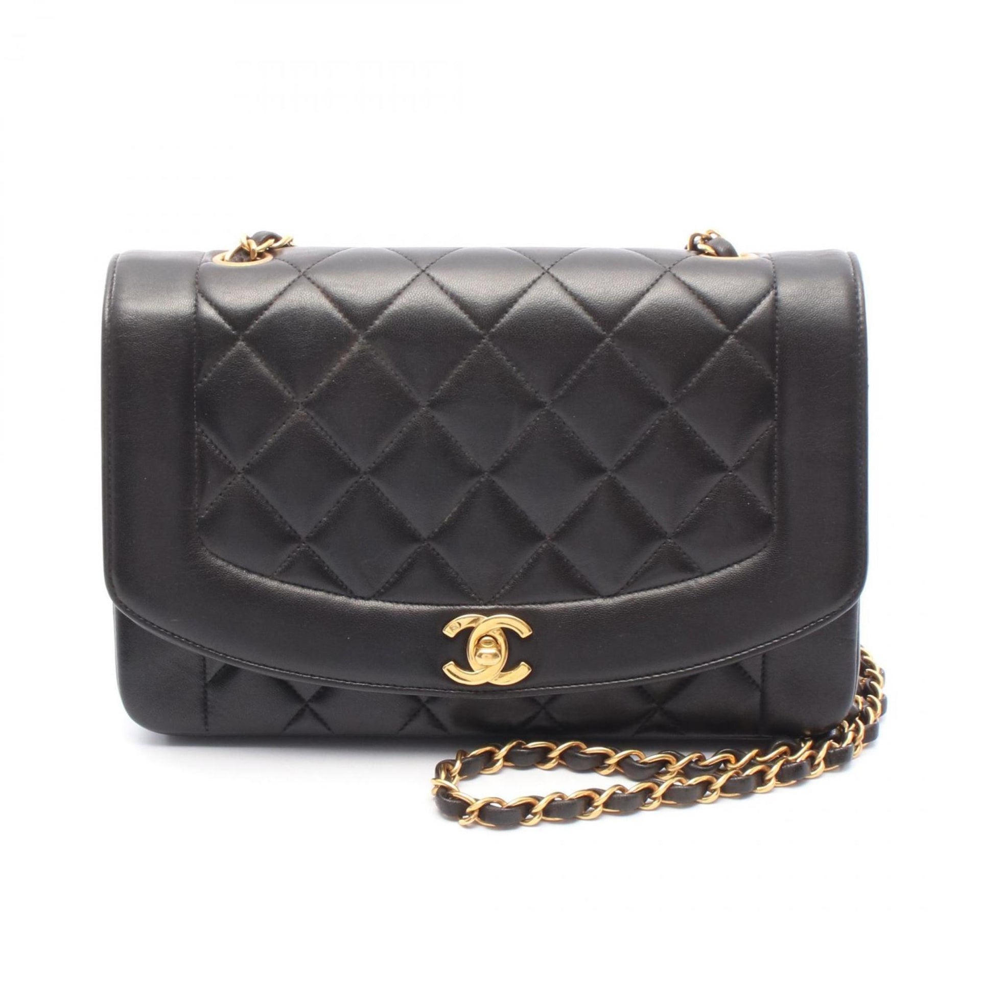 CHANEL Matelasse Diana Flap Shoulder Bag Lambskin (Sheepskin) Women\'s Black A01165