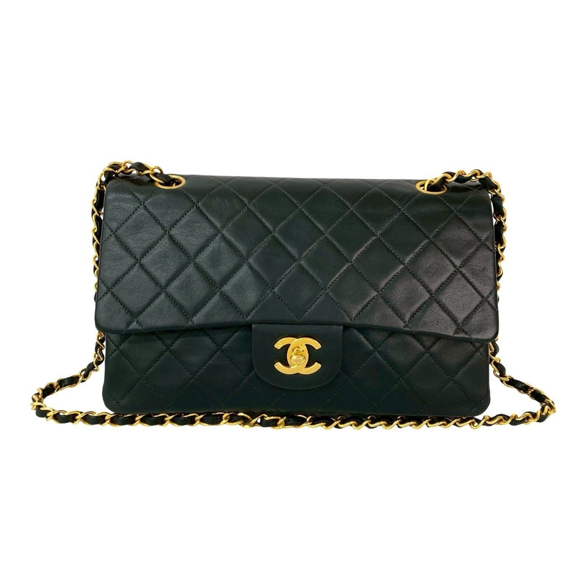 CHANEL Matelasse Double Flap Coco Mark Lambskin Shoulder Bag, Black, 04757