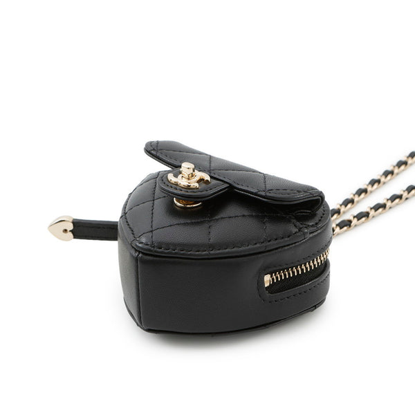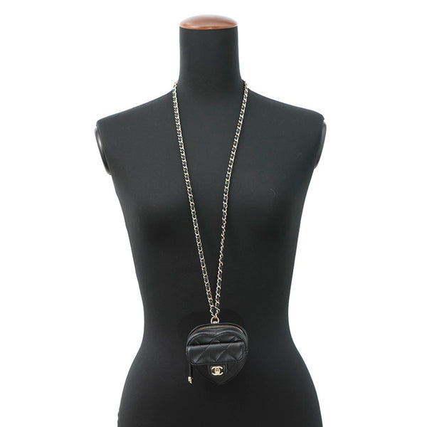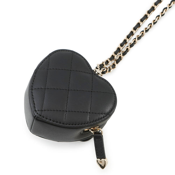 Chanel Matelasse Heart Chain Wallet/Coin Case, Lambskin, AP2783, Black