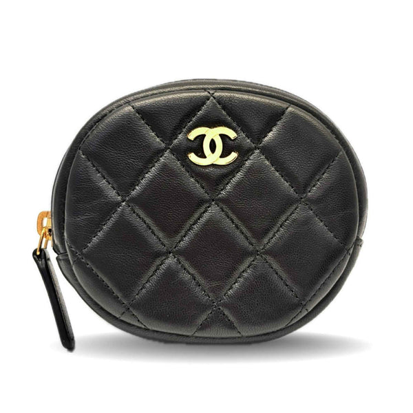 CHANEL Matelasse Pouch, Black Lambskin, Mini Cross-Stitch Coin Case, AP0217
