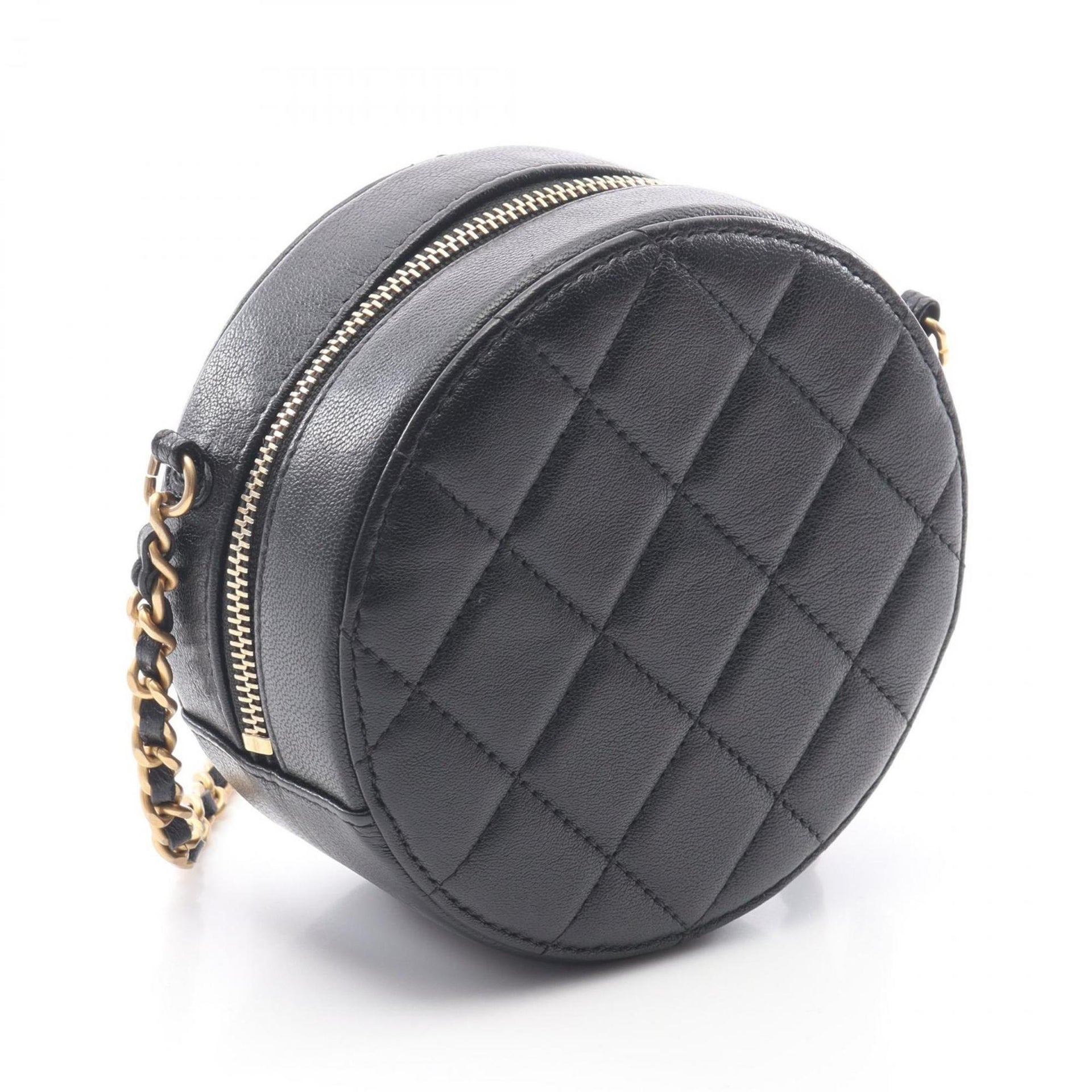 CHANEL Matelasse Round Mini Shoulder Bag Lambskin (Sheepskin) Women\'s Black