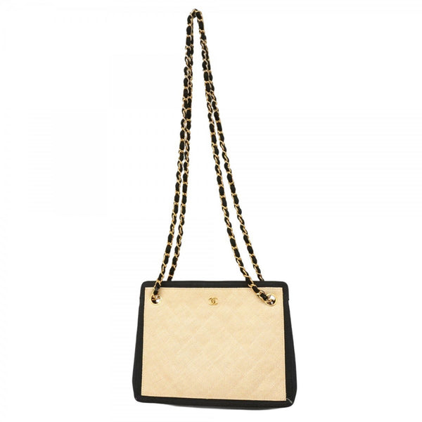 Chanel Matelasse Shoulder Bag, Chain Straw, Beige, Black, Women\'s