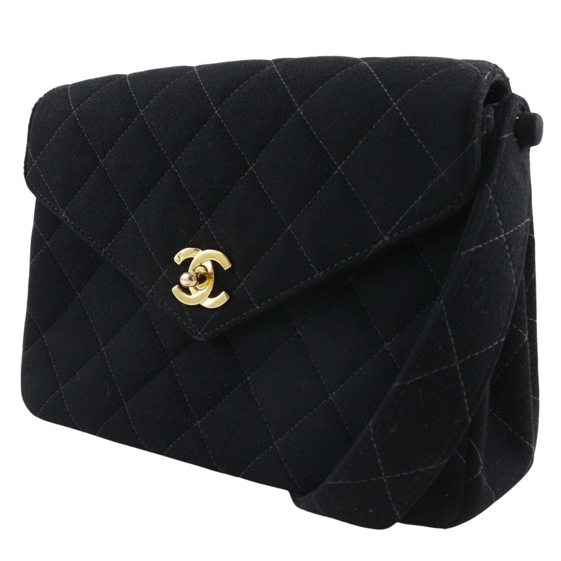 CHANEL Matelasse Shoulder Bag Coco Mark Cotton Black Turn Lock Women\'s
