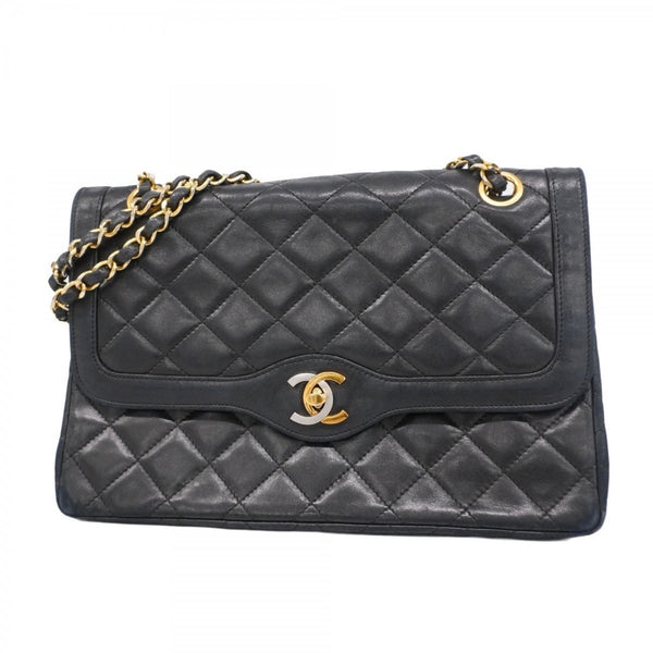 Chanel Matelasse Shoulder Bag, Paris Limited Edition, Double Flap, Chain, Lambskin, Black, Gold