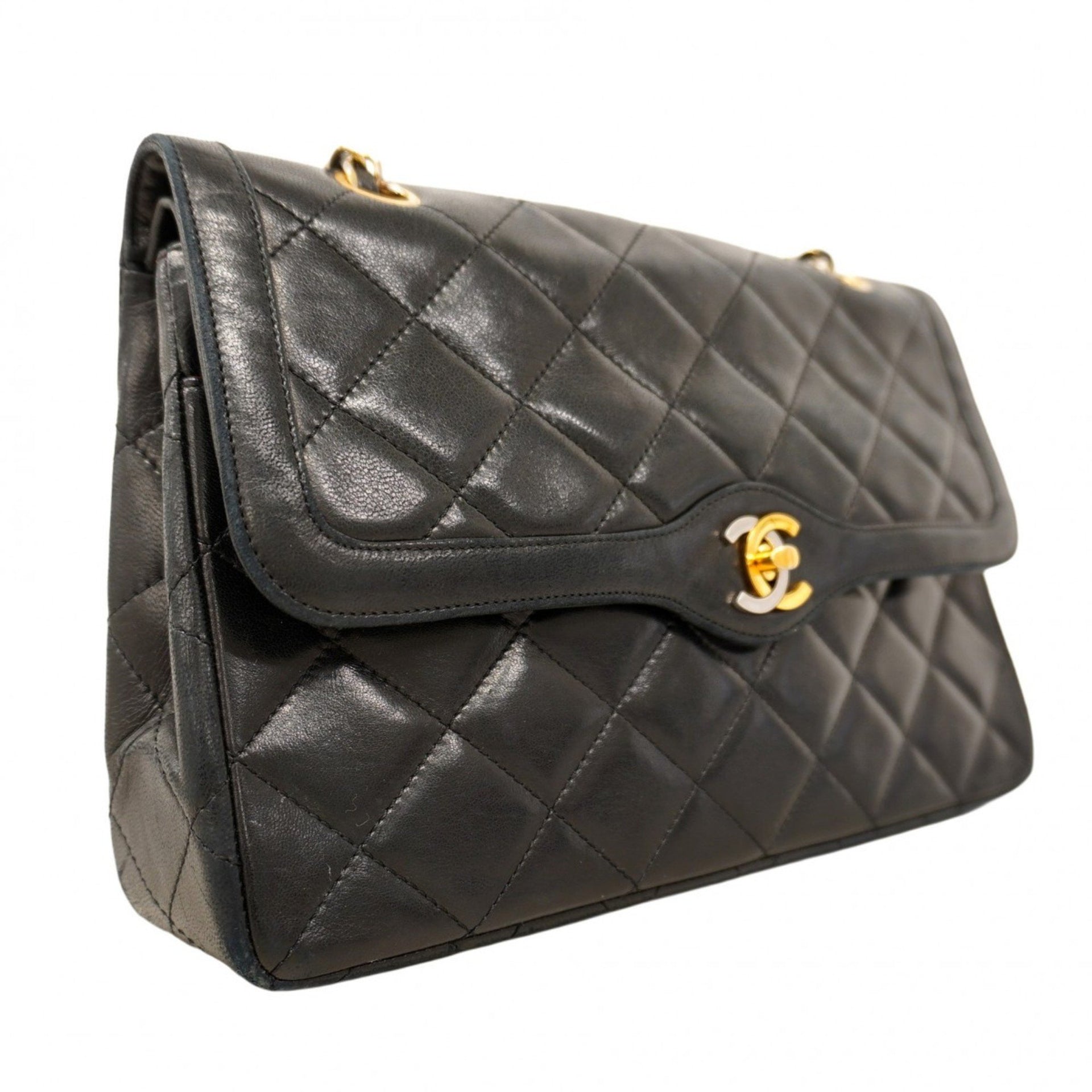 Chanel Matelasse Shoulder Bag, Paris Limited Edition, Lambskin, Black and Gold, Women\'s