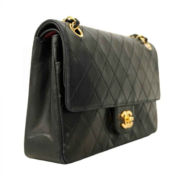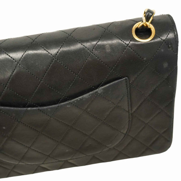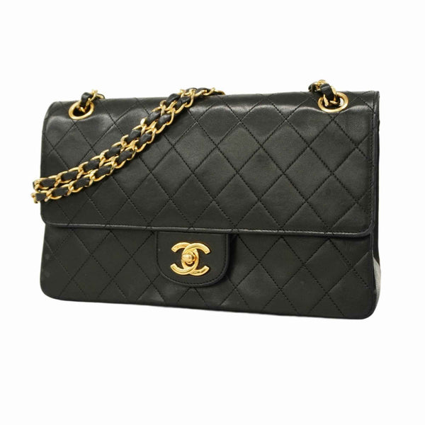 Chanel Matelasse Shoulder Bag with Double Flap and Chain, Lambskin, Black, Women\'s