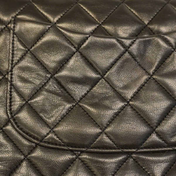 Chanel Matelasse Shoulder Bag with Double Flap and Chain, Lambskin, Black, Women\'s