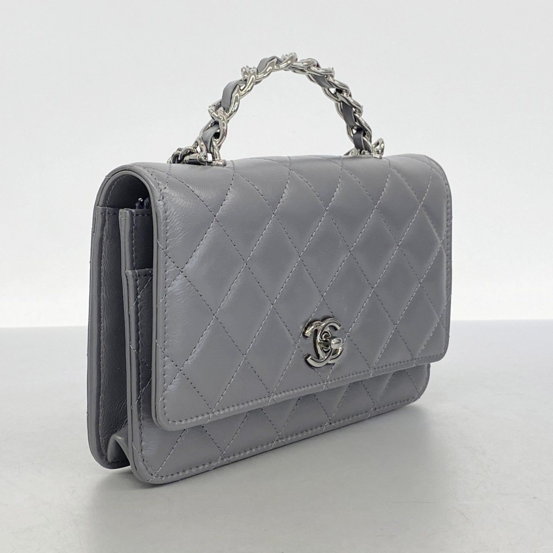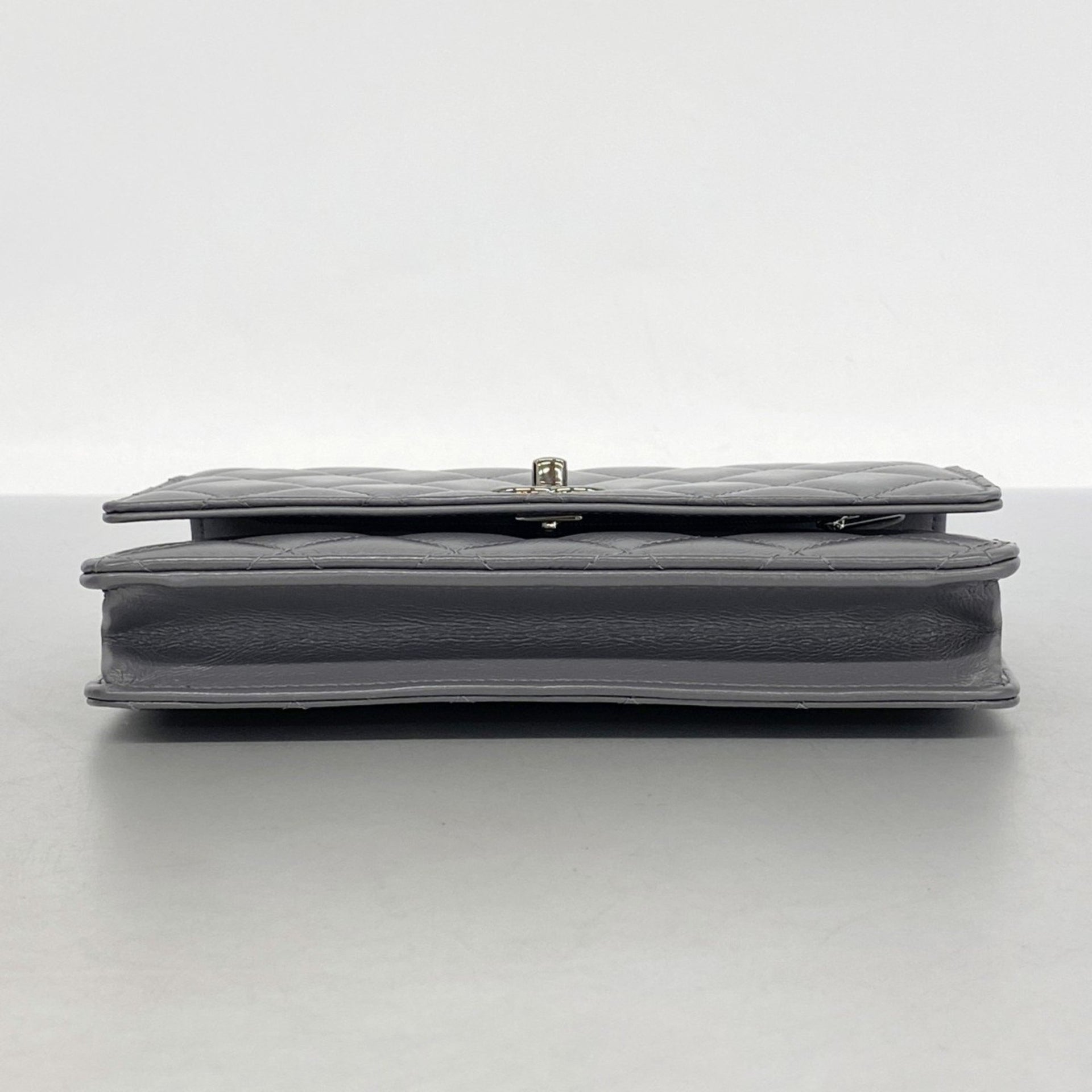 Chanel Matelasse Shoulder Wallet with Chain Strap, Gray Leather, 2-Way Bag for Women