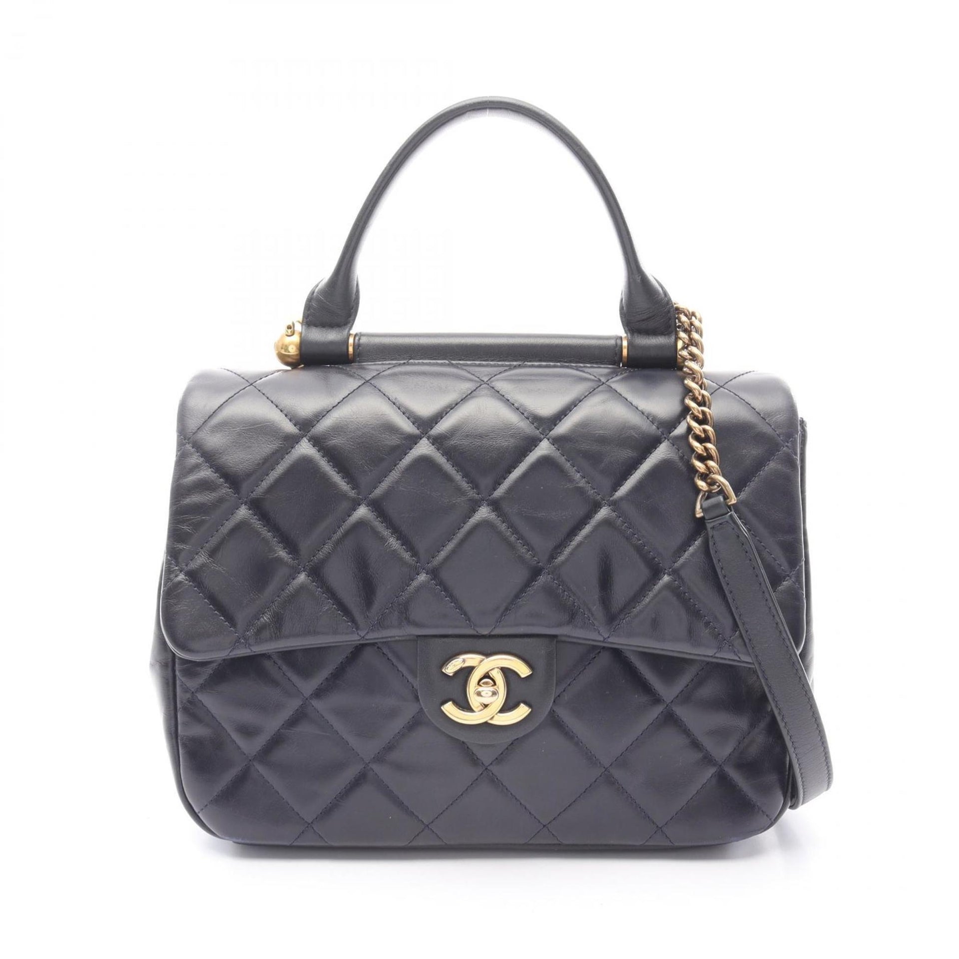 CHANEL Matelasse Top Handle Shoulder Bag in Lambskin Leather, Navy Blue