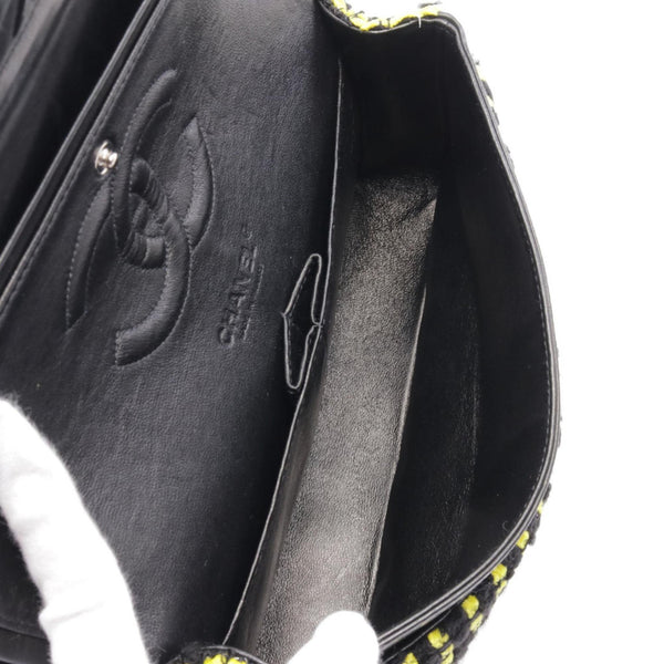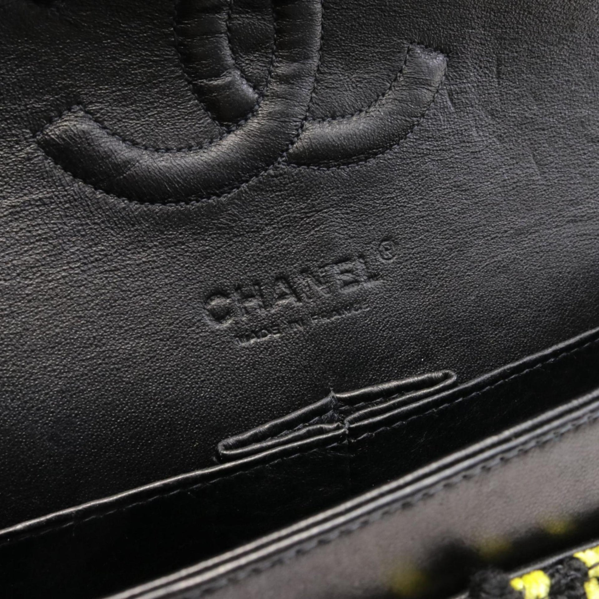 CHANEL Matelasse W-flap Shoulder Bag Fabric Leather Women\'s Yellow Black A01112