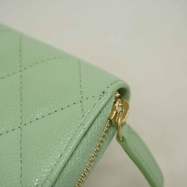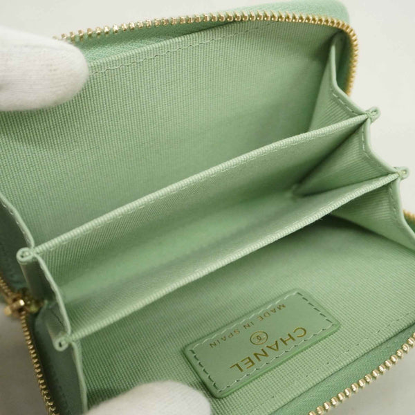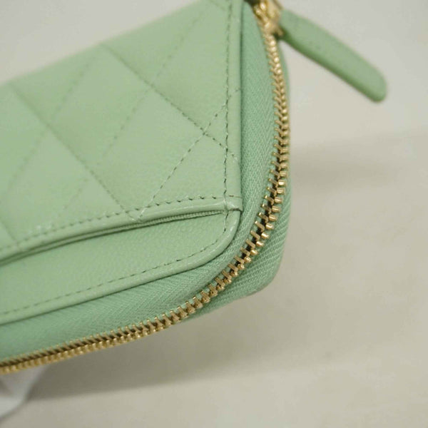 Chanel Matelasse Wallet/Coin Case in Mint Green and Champagne Caviar Leather for Women