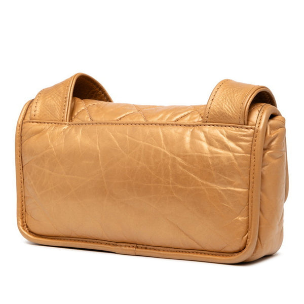 CHANEL Matelasse Wild Stitch Vintage Crossbody Shoulder Bag in Gold Leather for Women